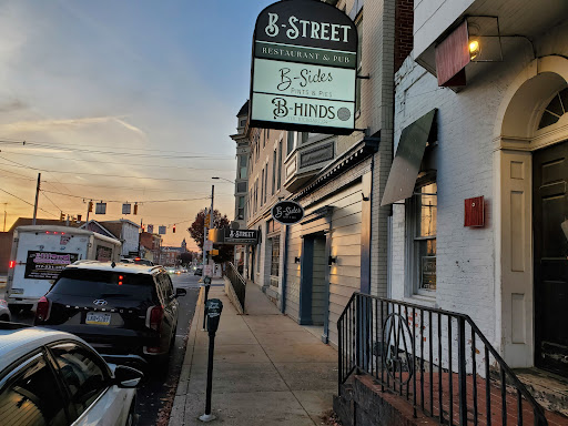 B-sides has its own entrance from the street but technically it's in the same building as BStreet. Anyone who's local to the area knows this used to be a restaurant by the name of Antrim House. My first observation is their "to go" layout. They have warmers by the door which makes it very quick and easy get your food on the way by. I've haven't done pick up yet so I'm not 100% sure how the process works. I'm assuming you can pay over the phone with a credit card so you don't have to go to the register. As far as the inside goes there are lots of movie posters and three TVs showing movies while you eat. The layout is really cool and they have plenty of seating for larger parties. They have a menu sitting inside on a stand that you use to figure out what you want then you go up and order at the register and pay. They hand you a beeper and then you seat yourself. Once your beeper goes off head up to the counter where they will have your pizza ready. They have 13 regular pizzas and usually a special one that changes periodically. My family of four ordered the #2-Pepperoni, #7 -Cheesesteak, and #9-Pork BBQ. With water to drink our total bill was $36 so each of us ate for less than $10 which is very rare these days. The pizzas are on the thinner side which I am fine with but the toppings could have been a little more generous. However, they were all very well flavored. I also have gotten to try #8-East meets West. It's not your typical Hawaiian because the ham is black forest and had a smoky flavor to it but it was very good. There were two people working register and one bartender who were all very nice and did a great job. No loud music and the TVs weren't turned up so it was not difficult to have a conversation with your table. Everything here was self-serve so you get your refills of water or soda as well as your own napkins and utensils if you need them and you also got your own parmesan cheese or red pepper flakes which are near the registers. Currently they do not have a website or phone number that I know of. I only found out about them because of Facebook. Overall I highly recommend this restaurant especially if you view Pizza as something more than just to stuff your...