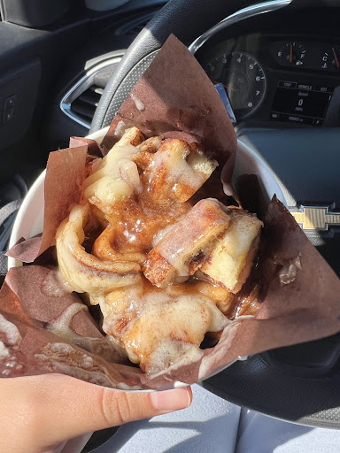 Read moreI don't know about these reviews....they seem pretty fabricated to me. These cinnabons don't seem as fluffy as they've always been everywhere else. They're very thinly rolled and have a lot of layers. That may seem like a good thing, but it's not. They also charge $1 for extra frosting, and the container is not even filled all the way. Seems like a rip-off to me. I think if I'm craving a cinnamon roll, I'll just go to Mayfair instead. I really was excited that there was a location at...