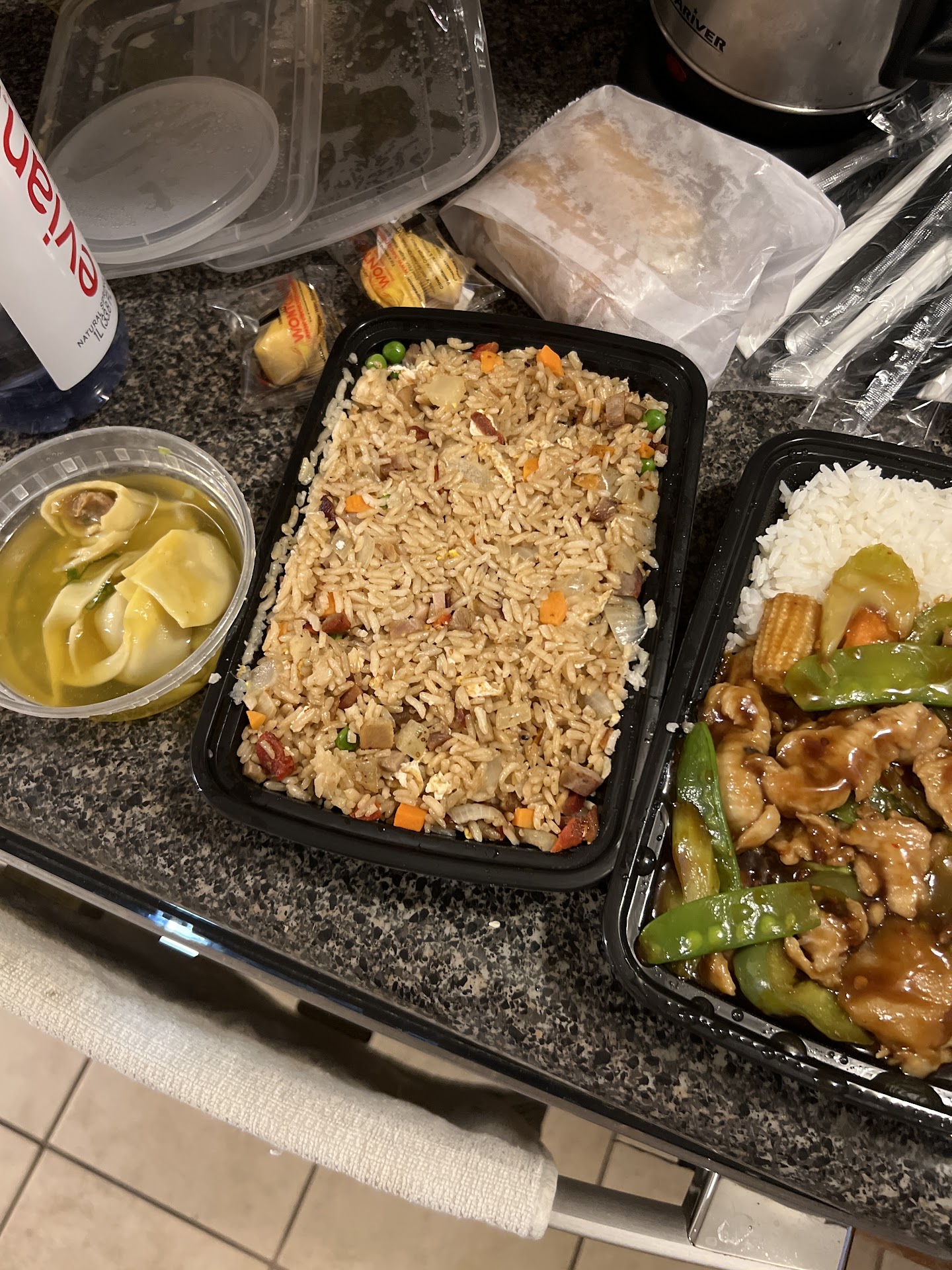 The orange peel beef was inedible, all breading and no discernable beef. Also not spicy at all.