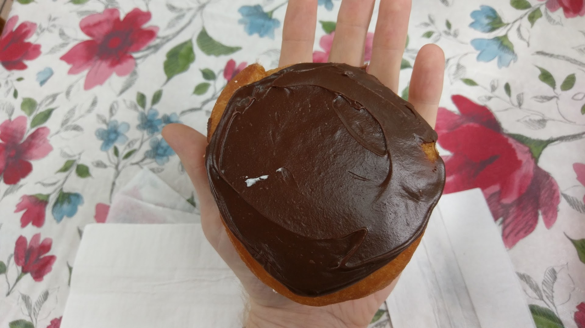 Their donuts are HUGE and well worth the price, which is extremely fair. I don't think I can ever eat at Dunkin Donuts again after this! Fortunately I run so I can afford to have a donut every so often! I think my favorite is the maple bacon (pictured bottom right in box). But the creme filled (pictured in my hand) is so big I skipped lunch! The raspberry is a favorite of my mother's. I like the lemon but I wish it was a lemon creme and not a lemon filled.