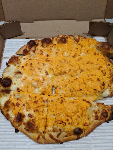 I give the pizza a 4/5 I liked it a pretty good amount. It reminded me of cafeteria pizza in style but was cooked better/hotter and had higher quality ingredients. This was kind of a nice touch since I don't have pizza that reminds me of cafeteria pizza often at restaurants and when I do it usually sucks because it's cafeteria pizza, so this was kind of a delightful little quality for me. Cheese pizza was solid, buffalo chicken pizza was also really good but did need bacon, red onions, and banana peppers added to be a great buffalo pizza. With these additions it really got there though, although the sweet heat was a tad too sweet.