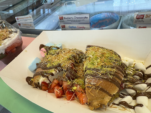 Read moreToday, I experienced a wonderful surprise while searching for the famous Dubai chocolate strawberries, thanks to a friend's recommendation. This place offers an impressive array of desserts, including waffle cone ice cream cups with all the Dubai chocolate ingredients and an ice cream sandwich that's expertly heated on the spot. The combination of the generous helping of pistachio and chocolate, paired with the perfect crunch, makes for a truly exceptional experience. I wholeheartedly endorse this establishment, which not only serves remarkable desserts but also maintains a clean and welcoming environment, a trait that's always commendable in small businesses. The people working today were so truly so nice and just as excited as I was to make these dessert...