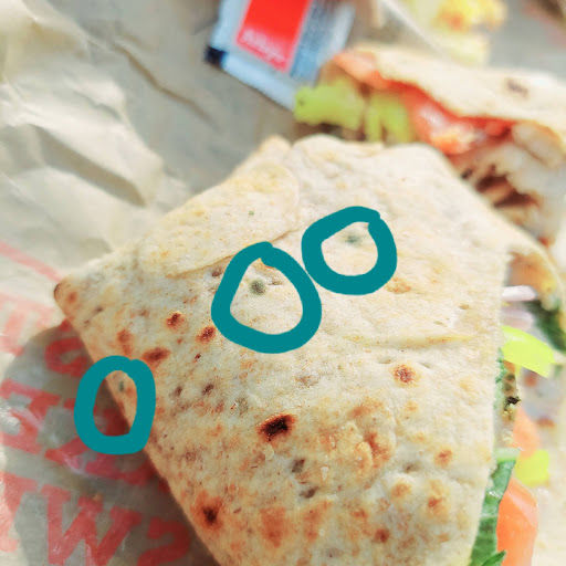 *You can see the chicken wrap is from Arby's because of the Arby's logo on the paper wrap and the marinara sauce container says "Arbys" at the background in the picture. Circled the MOLD in...