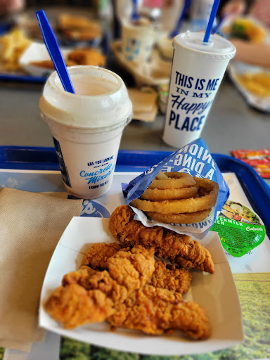 I am only providing two stars based on the fact the food was fresh and tasted great. My husband and I were visiting family out east so we decided to stop here on the way back into town. First issue started with ordering where the literal child on the intercom was acting completely annoyed that my husband asked what came on a burger. After being told they were all made to order, we finished ordering and get to the window. My husband asked for extra ranch because we ordered four meals, and our kids like to use the ranch for their cheese curds and chicken. We're told yes it will be in the bag when they bring it out. Upon the food arriving, they forgot the kids' ice cream scoops, so the employee ran back in to grab them. We go to park to eat and there are literally two ranches for three orders of chicken tenders, and two large cheese curds. Make it make sense please. So my husband runs in for more ranch. Once we all start eating, there was no bacon on my husbands bacon burger. No napkins. No straws handed to us when we first got our drinks at the window. So I run in to get bacon, napkins, and straws. The fact that the employed staff here all look to be 16 and younger is saying something. I'm standing in line trying to get help and the kid that is helping me is constantly being harassed for "hi-5's" and trying to start conversations while he's helping a customer. This location needs to teach about everything having a time and place. That is beyond annoying at that point, where my foods getting cold that I paid close to $50 for, so your employees can play graba$$ and still get paid. I've worked my way up from hostess to front of house manager at a fine dining establishment by 24. You don't have a functional operating ship unless everyone's on board to see to it that it functions accordingly. This was ridiculous, and if I were the owner, I'd want to know what was happening especially the horse play that was going on for the 5-10 mins I was inside. I'm not here to do your job for you. You get paid. You take MY money. And yet, patrons are still running in for lack of quality checks and time management. Because god forbid if you double check everything, you might miss a booger flicking...