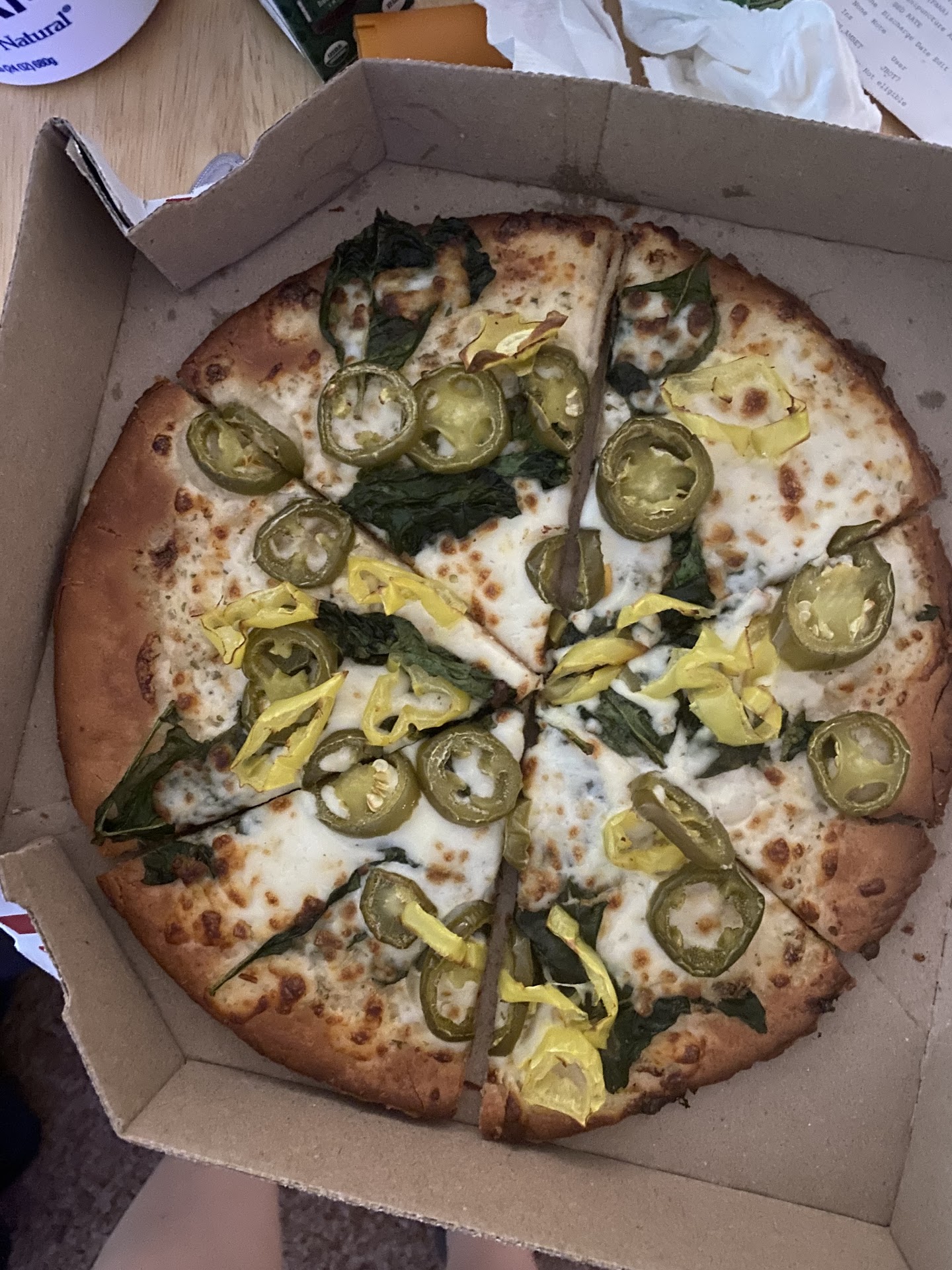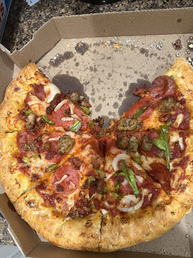 Read morePlaced our 1st delivery order, order came fairly quick & was hot n fresh!! The pan style tasted wonderful( Alfredo sauce with pepperoni) the large new York style seemed on the dry side with barely any toppings or sauce. They were running a great online order special with menu items 50% off. The driver Austin came, was friendly but situation appeared off to me bc I asked for the receipt to sign and he said that he must have misplaced it. So I asked ok well how will I give you a tip... he said oh its ok don't worry about it. Well I called the store & added an 8.00$ tip for him the lady said she would add to order. Still I don't like the fact I couldn't sign for it. So hopefully in future make sure customers can. update placed an order. 50 min goes by and tracker said Tera prepped at 50 min ago. Called store just to check and immediately greeted by "Dominoes please hold" I couldn't even reply ...I waited patiently. She co.es back saying sorry you were on hold then as ai tried to explain and she rudely cut me off saying it's out of oven now. ... 55 min after placing my order. A bit much for paying high prices and a good tip to not even be acknowledged for a sorry or let me...