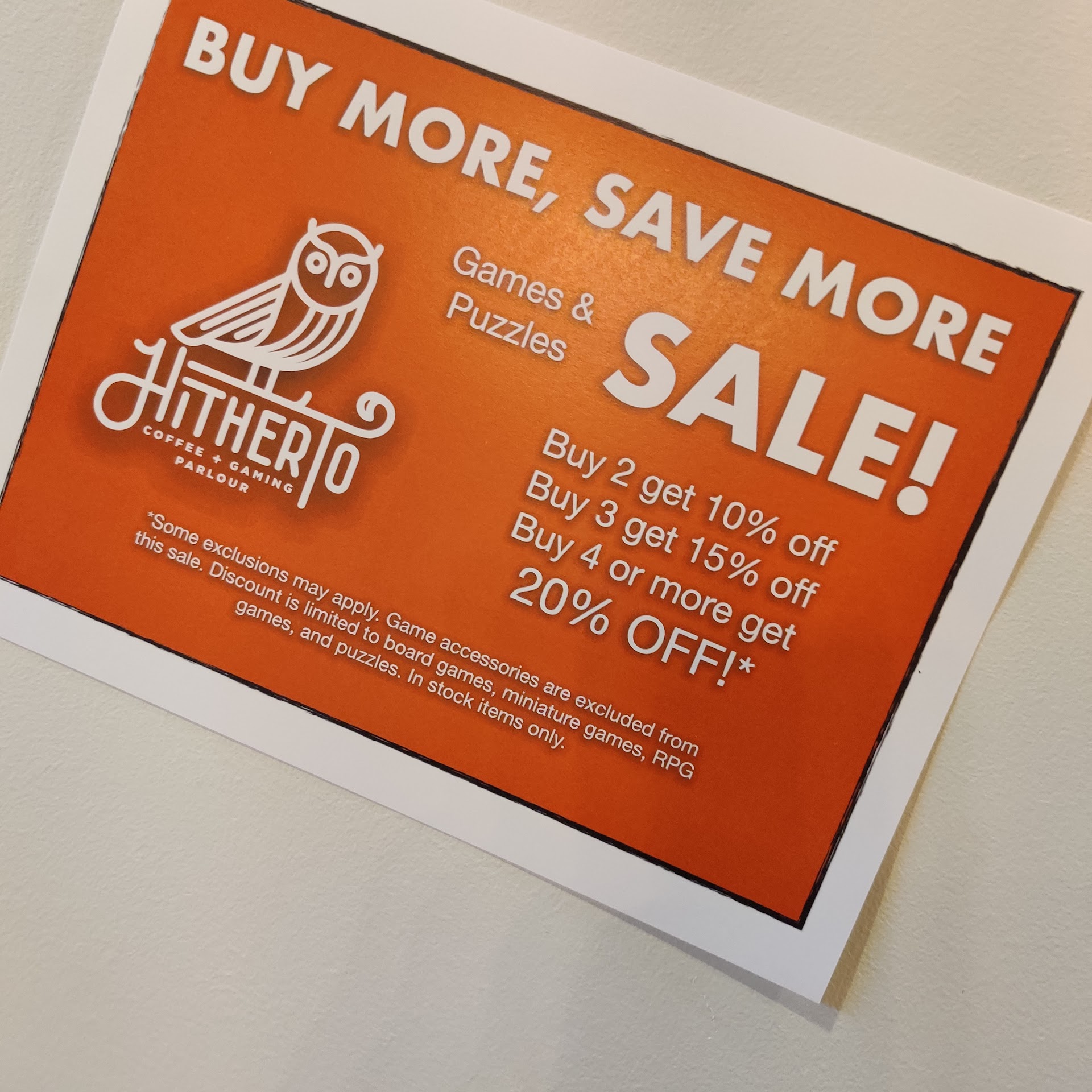 I purchased some sealed MtG products last week at a great price. This week I purchased four board games that had been on my wish list as they had an awesome 20% off sale going on this week. Baristas told me the sale ends Saturday at close and I highly recommend you stop in before then as they already have competitive prices without the sale.