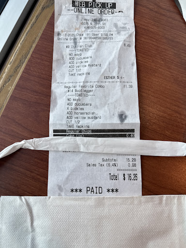 Read moreI work across the street in healthcare so I decided that this would be quick! From the moment I walked in it went downhill immediately. No greeting, no update as to why no one was taking orders for dine in guests when one guy was putzing around by the deli slicer do absolutely nothing. I fact the customer ahead of me snapped his picture. Stepped up to the counter and was immediately met with unprofessional attitude and lack of any type of customer service skill I have seen during my experience in the industry since 1999. Carissa (Clarissa?) couldn’t even figure out how to add mayo to the Vito sandwich, my suggestions got eye roll reactions(i suggested she put the mayo inbetween some of the ingredients or on top of them or on the side and I’ll add it to the sandwich myself) was told I can only get mayo packets lol what? Customer behind me asks for the manager and lo and behold this unprofessional negative attitude employee Carissa is the “one on charge” She starts speaking tho the other customer in a very rude negative attitude condescending tone. At the point I’m DONE with this type of behavior from someone getting paid to make sandwiches. As I’m leaving she says something along the lines of good u don’t have to be here. The man in the back who was to busy to attend to us in the store suddenly comes up to the counter as he could possible bring some sort of intelligence to this interaction stood there with his mouth hanging there, I question lack or brain cells or high out of his mind. Demotion and re-training on ALLL customer service/food industry standards cuz this certainly was unacceptable and not up to par with jimmy johns. I will not return to this location and shared this experience with co workers. they decided to go elsewhere for lunch. We were all excited to all try the pickwich. Do better Jimmy Johns. Qdoba next door was...