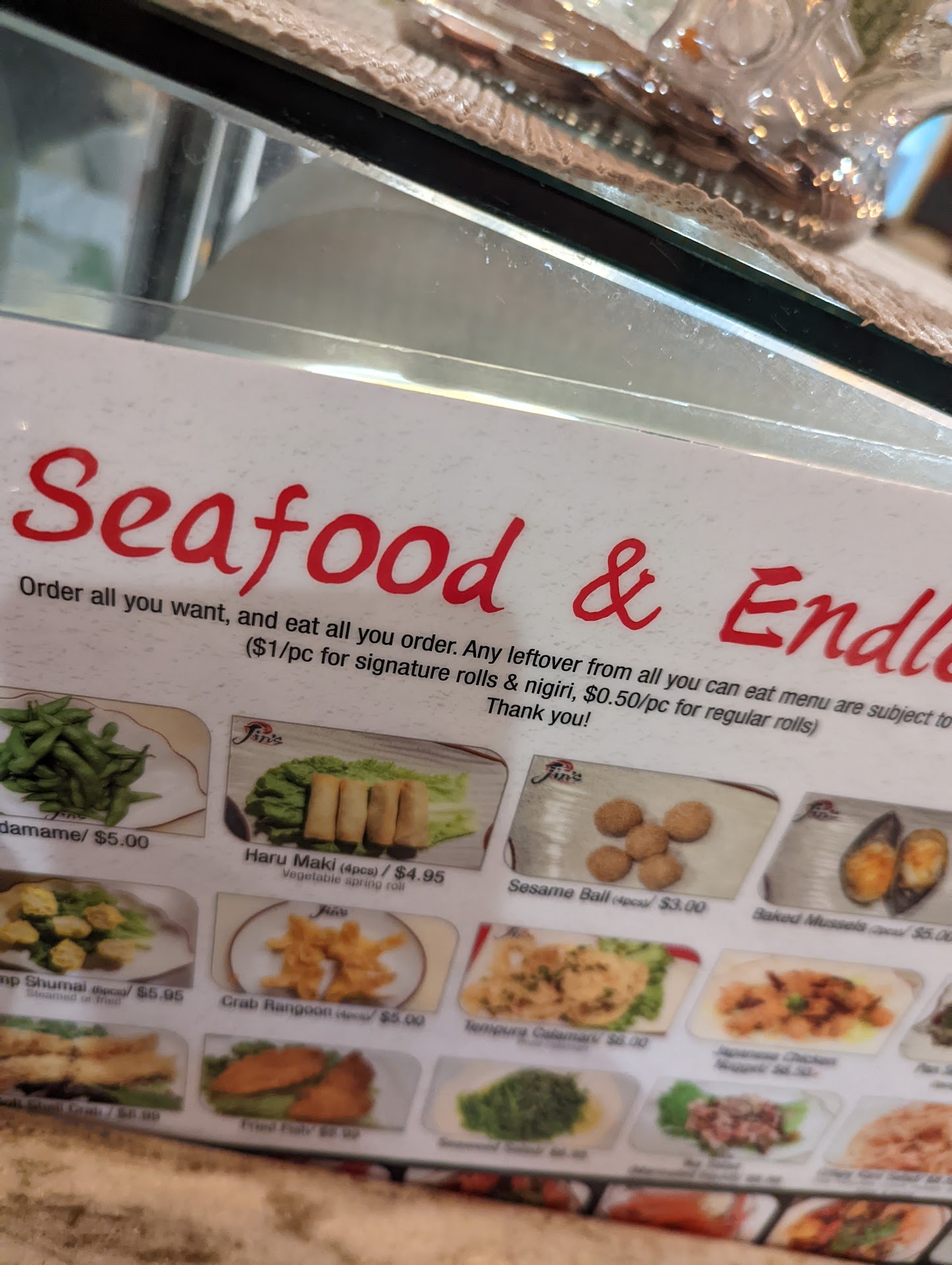 I came here for lunch today with a friend and there were some good things as well as a lot of things I didn't necessarily enjoy. Ordering food for first timers can be confusing especially if you want to try the Endless seafood/sushi. However this is our second time here and our first time wasn't the greatest either but wanted to see if anything would be different this time around. We went with the endless sushi again. The pricing is competitive to say the least we were happy especially since other places can go up to $20+ for lunch while here is $16.99.