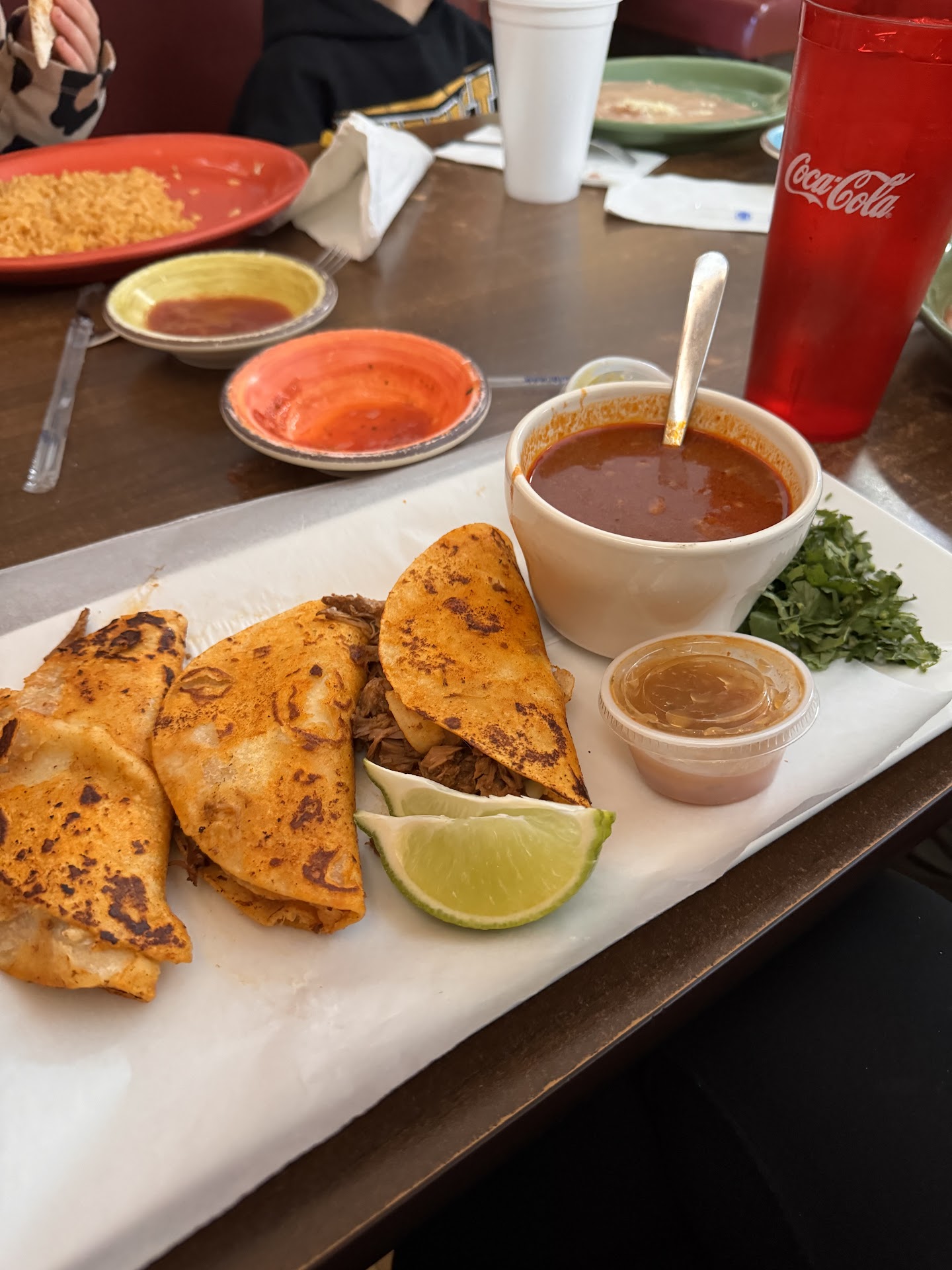 Read moreI ordered taquitos Mexicanos with cheese sauce ($1.50) extra. But because I ordered the cheese on the side so they didn't drench my food in it and because it was on the side it costs $3.00! I'm so confused and irritated as to why. I didn't order a small cheese dip. I wanted the cheese that you were going to drench my food in on the side. They upcharged me on things that should not have been. Then when asked about it they "didnt understand" what i was saying. There was no reason one adult and 2 kids needs to be $50. Especially when all 3 meals added up to $38.00 with drinks!. Never again will we go here if yall are going to be stealing...