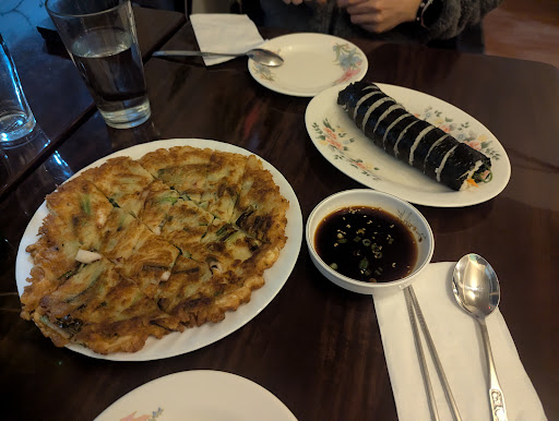Read moreWe went to dinner a little before 7 on a Monday evening, and had the place to ourselves. I was in the company of my nephew and his wife, who is from South Korea. My own experience with Korean food is quite limited, but I'm enjoying their introducing me to a number of dishes in the last year or so. We shared an order of Kimchi Pajeon, a pancake reminiscent of a thin omelet and flavored with kimchi, the spicy fermented cabbage so frequently part of a Korean menu, accompanied by a soy-based dipping sauce. It was a bit overdone around the edges, but otherwise very good, and a sufficiently generous serving to share before our main course. Next I had Beef Bulgogi, marinated beef with scallions, and my nephew had Ohjinguh Bokkeum, squid with vegetables served in a (very) spicy sauce. His wife had a soup with noodles whose name I didn't catch, but which she pronounced authentic. The non-soup dishes were served with rice. We enjoyed our meal, and my nephew and his wife took home an order of Kimbap for his younger sister. I would recommend either of the dishes I named, with the understanding that the squid dish is quite spicy - the taste I had didn't leave me gulping water, but I was happy to have rice to go with it. The Bulgogi is a decidedly safer choice, and I look forward to being a bit more...