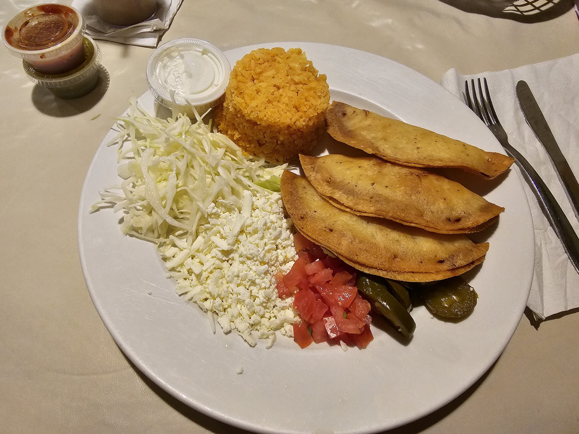 It started with huge chips and thin, watery and flavorless salsa. The guacamole was also flavorless. Basically just mashed avocados with tomato cubes. I had the CARNE A LA TAMPIQUEÑA- ribeye steak with tortillas. I asked for the meat medium, but it came out so well-done it was like eating a cowboy boot. I could barely cut into it, even though it was very thin. Flavor would have been ok if it hadn’t been cooked to death, possibly. They gave us white rice with the tacos, which was unusual, but the French bistro style paintings on the wall and the various non-Mexican entrees in the menu might have topped us off. They’re definitely not committed to doing Mexican food right. My wife had ordered the salmon tacos, but instead they gave her shrimp tacos. She was going to eat them anyway, but they were not good. The waitress said the cook said he read the order wrong, and her order came out 10 minutes later. No apology really, just blaming the cook, and a lot of eye rolling, and also they did not take the salmon off the bill. The salmon was ok but wet for some reason. I wish I had better news about this place. If they had removed the salmon from the bill, I might not have written this review. But they just didn’t make it right- nor was there any real attempt.