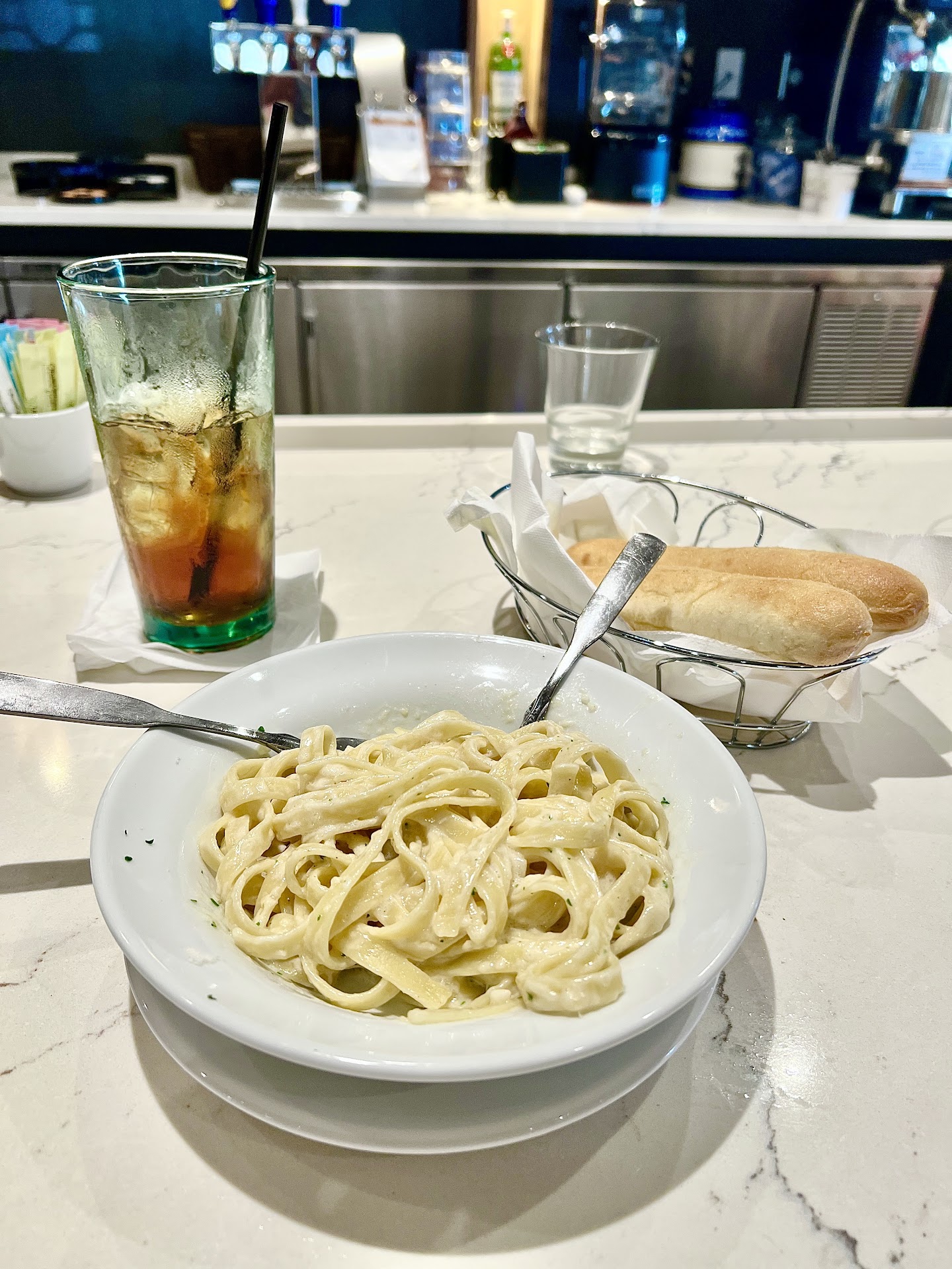Read moreWe visited Olive Garden yesterday 8/10 for my mother’s 89th birthday, she loved the atmosphere, design and most of all her creamy mushroom sauce pasta. We enjoyed dinning together as a family and celebrating 89 years of wonderful life for our mother, but one thing made our visit very unpleasant, our waitress Kristie was just not up to par, our food took about 45 minutes to come out around 330-3:45 in the afternoon, my mothers pasta came with the wrong noodles the first time, Kristie seemed happy and nice when we first were seated but then she just seemed to be agitated, angry, and very unpleasant, she disappeared at one point for about 10 minutes and another waitress came to see if we needed drink refills or breadsticks and when our waitress came back she smelled terribly of cigarette smoke and was standing in the dining area talking to other wait staff very upset she had not been sent home for the day yet, she was very upset that she was still there at 4pm. She did check on us and bring refills of drinks and bread slowly but her attitude, agitation and want to not be there made it seem like we needed to rush and eat our food so she could leave. The cigarette smell was terrible and just not something we wanted to smell around our food. We will be back again to enjoy the food and atmosphere and hope it’s a better day for...