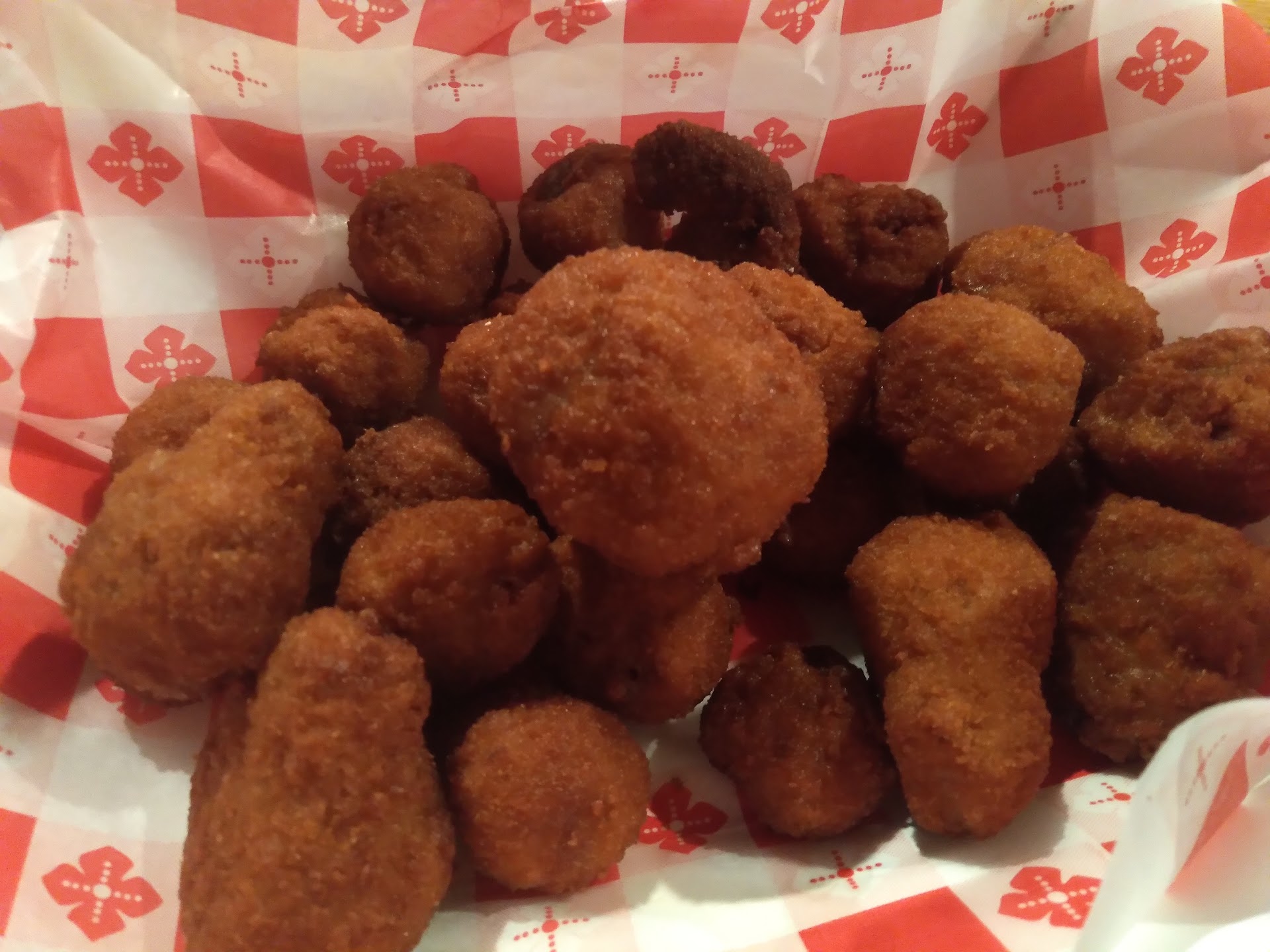 I ordered Breaded Mushrooms with Ranch to start and the Monterey Chicken (grilled) as a wrap, with Seasoned Fries. The fries are Cajun seasoned, and CeCe warned me that sometimes they are a little heavy handed with the Cajun Seasoning and asked if I wanted to request them as "lightly seasoned." I did. I'm very glad she recommended that as they were still heavily seasoned. They were delicious, don't get me wrong, but anymore seasoning and I wouldn't have been able to eat them.