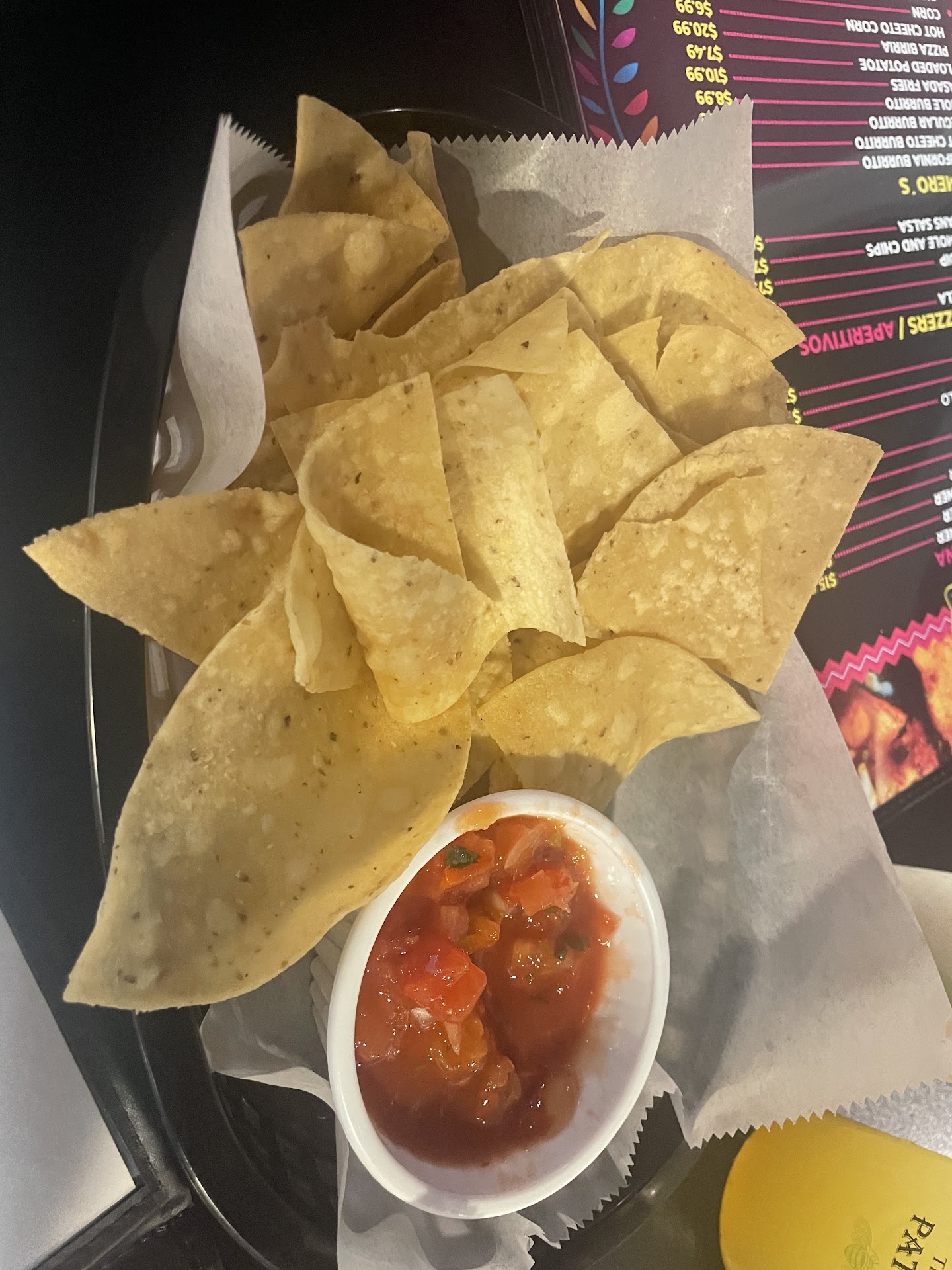 Read moreWe decided to try a new Mexican restaurant. I read a review that said they had the best hot fresh chips and salsa. We arrived and were seated right away. We had a server right away but she did not tell us any specials or describe the menu. The items on the menu have a name but no description. She answered all our questions and was very sweet. The chips and salsa were not as we hoped. $6.99 for tortilla chips that were not hot and fresh and tasted like they were from a bag i could buy from pick n save and the salsa was about 3 oz. Not worth it at all. They do have a margarita flight which is not on the menu and $22. Its pretty to look at but not worth $22. I would probably just get 3 regular big margaritas for $8 each. The birria taco was good and the enchilada was good also. The burrito was dry, needed at least some sour cream and small scoop of guac on the side. The $6.99 chips and very small salsa is the deal breaker for me- charge a little bit more on each dish to give the free chips to each table. Every other Mexican...