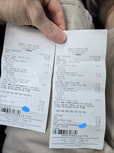 Nothing but "ATTITUDE" from employees working Drive Thru window today. When I asked if my orders were understood to be Combo Meals, a different voice came through the intercom retraining me (their CUSTOMER) with an abrupt "You need to say you want a Combo!" This was said in a very defensive tone as if I had somehow crossed the line by trying to confirm that they had my order right. Then, when we arrived at the drive-thru window, no greeting or any other smidgeon of courtesy toward a paying customer who made their employment here a possibility was offered. The employee just opened the window and blurted out the price.... No "please".... No nothing. She shut the window in my face, processed my payment, opened the window, and shoved my card & receipt toward my face while staring at me with a sullen expression and, again, no words. Not even a "Thank you." When I asked her if she was having a bad day or something, she replied, "No, I'm having a good day today, " and shut the window in my face. When she brought us our shakes (which they didnt offer whipped cream or a cherry on when they originally took the order, the window opened, again, zero speech offered, shakes handed to us (no toppings on them), the sullen look, and the shut window. Finally, the window opened, a bag of food was shoved out the window toward me, a sarcastic sounding monotone "Have a nice day", and an ubruptly shut window. We are heading home to the Chicago metro area after a very pleasant time away from nasty behaving city folks. Everywhere we went on our trip, we were welcomed and treated politely and with respect as valued customers. But definitely not here. I dont know if the cause of this attitude we received was racially motivated, or if it is maybe just that time of the month for the staff working there that day. But, I DO know that we absolutely did not need to be treated to such outright, "in your face", unprovoked, and unjustifiable RUDENESS!!! We will always remember this extremely negative experience at Steak'n Shake, and we will definitely not EVER be back to this one because of it. (How many other customers are thinking the same thing but don't bother to write a review The whole staff working at this location during the afternoon shift on Sunday, June 23rd, 2024, either needs to be corrected or, for the sake of this business, doesn't need to be working with customers. (If they are that unhappy working there that they treat their customers this way, maybe they...