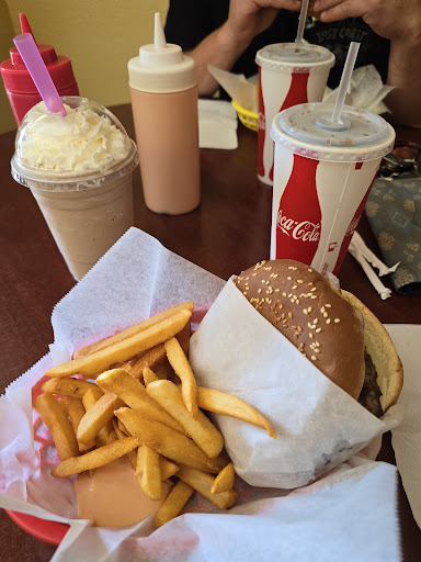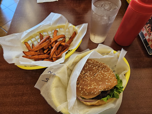 Ā Ā Ā Read moreThe cheeseburgers come on a large bun. The burgers are probably 1/4 pound flattened to fill the bun. Select the condiments you want. Good flavor. The fries and sweet potato fries are good, too. Everything is fresh, cooked after you order. Quick service. Clean. More reasonably priced than McDonald's. Handicap accessible, including tables and restroom. Clean restroom is a single seater. TVs on wall showing live sport event. Easy on and off from Hwy 101. Stop in and...
