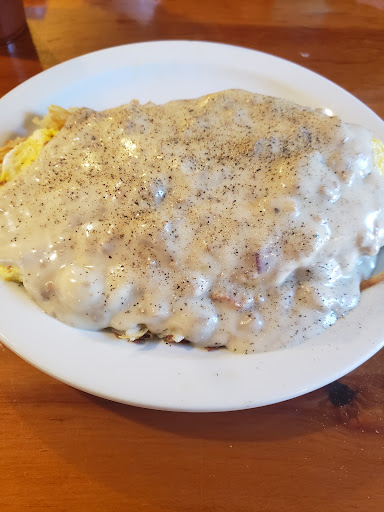 A super friendly waitress came by for our drink orders and shortly after our orders. Wife had the Piggy. 2 scrambled, bacon, hashbrowns, red onions and sausage gravy on a grilled biscuit. I decided to go all out and go with chicken fried steak, hashbrowns, 2 over medium, with sausage gravy over a grilled biscuit. BEST CFS I have had outside of Texas. Everything on this plate was homemade and I got one can now say I have had the best eat out breakfast I have had in NH. Snuck a few bites off wife's plate and can say it was awesome as well. Service was unobtrusive, friendly as can be and when she asked if I wanted a drink refill I asked if I could get it to go which was happily done. I REALLY wanted to give a bad review so people would stay away allowing me easier access to my new favorite place to eat breakfast as I cannot wait to try their other offerings. Prices are right inline with other places but for the taste, amount of food you receive and the great service this place is a standout.