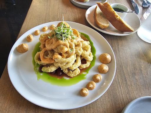 The food had a few surprises in the best way. The calamari appetizer was served over red beans, which caught me off guard at first. But the chipotle aioli tied the dish together nicely and helped bridge the boldness of the beans with the crispness of the calamari.