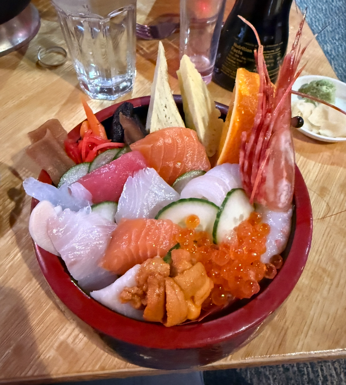 Sushi: I ended up getting the 12 piece sashimi for myself for $32 and it came out perfect. Wasn't really a big fan of the mackerel. I probably would sub them for other sashimi slices next time. The best thing about this is that I thought the chef made an error as I got two plates of a dozen pieces and got more than I ordered. The server told me that the order is correct. The sashimi slices are bigger than what they look and it needed two plates to complete my order! I really appreciate the quality and quantity for the pricing! Couldn't be anymore happy! 😁😁😁