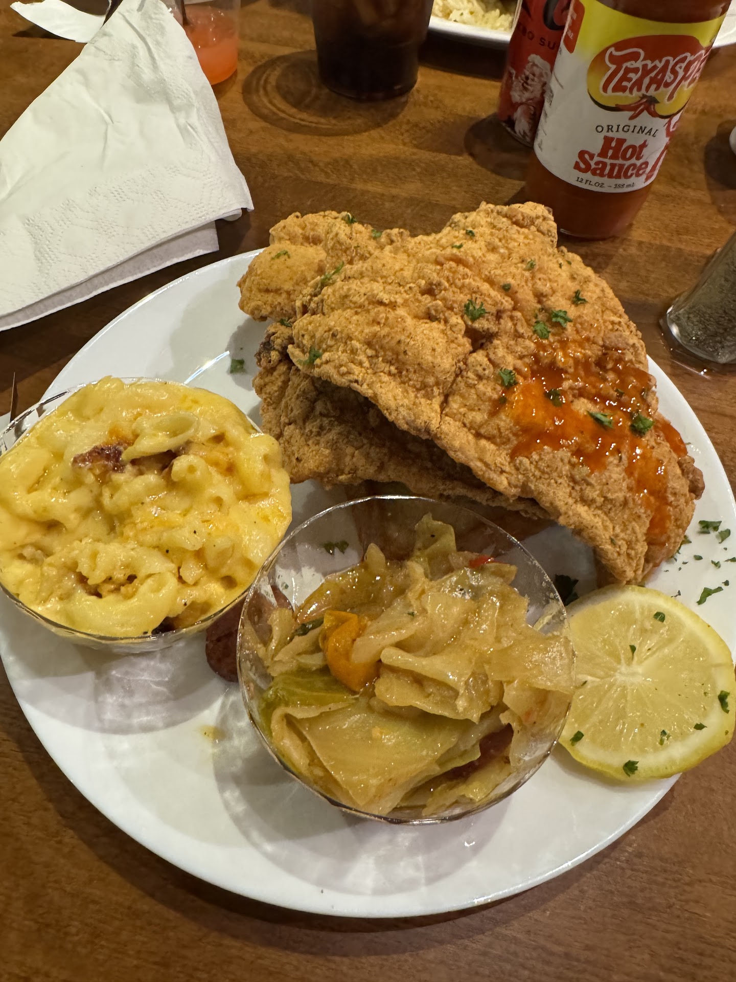 We just left after dining here about around 7:30p after arriving maybe 5 mins after 5pm. So we spent about 2hrs or so dining but most of it was waiting for food to come out. We had a party of 6 people. Upon ordering, we learned many options were not available due to volume of business with a couple of large groups they had yesterday. The one thing that 2 of us wanted was to try the Jollof rice. We were told that the cook was starting to prepare it and can take an hour or so, yet it is almost 5:30pm. On Saturday's they have been opened since 12p. Why are they not managing and timing the batches of the Jollof rice to know when to start on the next batch it this is one of the side dished that patrons are ordering most of, but I digress. We had 5 apps and 6 meals. One app came out lukewarm and the other was forgotten. The other 3 apps specifically were 2 orders of the jerk chicken egg rolls and 1 order of the cheesesteak egg rolls. These cheesesteak egg rolls were mid, slightly salty and the jerk chicken egg rolls for some reason seem like it had a heavy hand of cayenne pepper taste to it. We were told it would be spicy but not what was expected for the taste of spice and my family can eat spicy food. It also threw me that they are pairing the egg rolls with sweet thai chili as a dipping sauce for both these apps as the food is a Southern-Caribbean style. It took a while for all the main meals to come, but once it did, not much of it was seasoned. No salt. Cabbage, bland. Mac n Cheese, cheesy but bland. Even the noodles, bland. Green beans, if get southern style, it will have pork in it for flavor but still missing salt. If get the garlic green beans, it will have some sort of weird brown butter sauce which tasted bland. Sweet potato fries slightly fried too long. Garlic fries, salty. Chicken wingettes are best to get grilled because that is where the seasoning is, but if get battered or naked, no seasoning to taste. Please know, I am not a smoker and mainly drink water. Everyone at the table had the same complaint. For the food to taste bland, for the staff to stand around behind the counter most of the time talking, for them to have plastic catering plates, plastic cups and to cost this much especially when your are applying gratuity of 18% for parties of 5 people or more is highly disappointing. It seems as though this restaurant is not equipped to manage the volume people such as large groups if not supplying enough food nor managing the time within their service as have been now opened for 5 months. If they do not improve on all of these things, they will not make it. By they way, the dinner was to celebrate...
