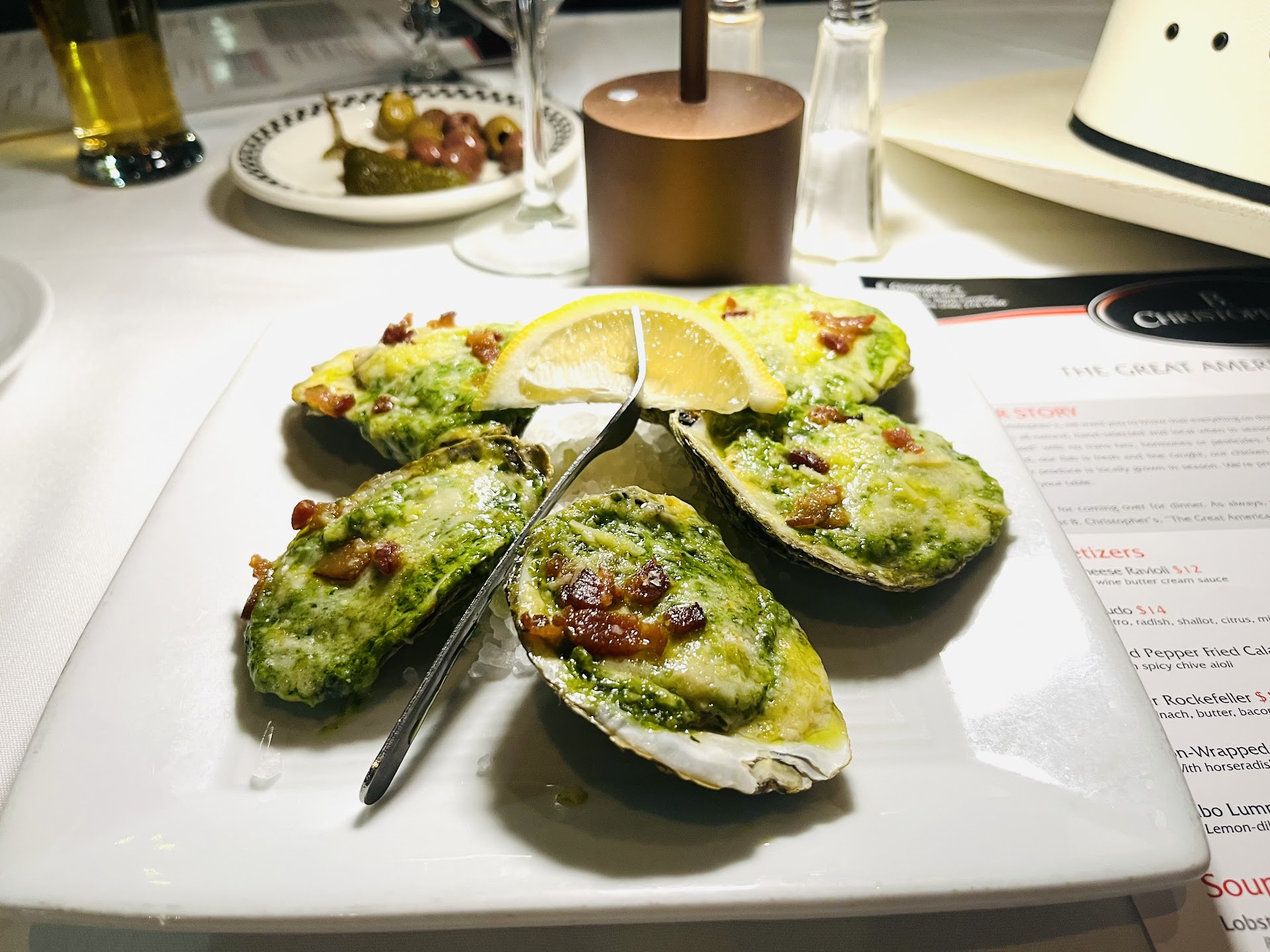Read moreWhere do I start? I booked a room at the Hyatt downtown and searched for a good restaurant in the vicinity. However, the restaurant was not a good one. It was not a great one. It was best described as divine. Let me say, I am a proud patron of fine dining. I don’t consider myself pretentious, but I can recognize and appreciate elevated cuisine when I see it. Especially since the pandemic, because expectations have been lowered so much for obvious reasons. I arrived at B. Christopher’s at my 7pm reservation and was immediately seated at a lovely table facing the street through a large panoramic glass window. I started with a delicious oyster Rockefeller. My wife ordered a bowl of an herbaceous French onion soup paired with an iceberg salad wedge that was very simple and elegantly presented. I ordered a main course of filet of beef served Oscar style with a velvety bernaise sauce. As a side, I had a delectable corn brûlée and roasted asparagus spears. The bread served with this dish was airy, light, but with a dense and crispy crust. Delicious! I hadn’t planned on dessert, however, the main courses, and appetizers had exceeded expectations, so I felt compelled to proceed. I chose the fried beneigts with raspberry coulis. It was an exquisite choice. Warm, flaky, with the added acidic jolt from the coulis….truly a joyous culinary experience. I don’t remember the last time I was so impressed with technique, presentation, service, and ambience. I recommend this restaurant with all confidence. It was truly a fine dining...