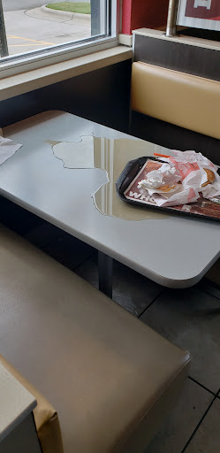 Add onto all of this the soda machine had no ice this whole time for ANY of the customers who were being helped. No ketchup Soda station looked like it exploded Add a "TEAM LEADER" who was expediting food with an attitude and ignoring customers. Asking this member for ice typically resulted in a roll of the eyes and a cup banged on the counter. And the below table (in photo) was there the whole time this was happening.
