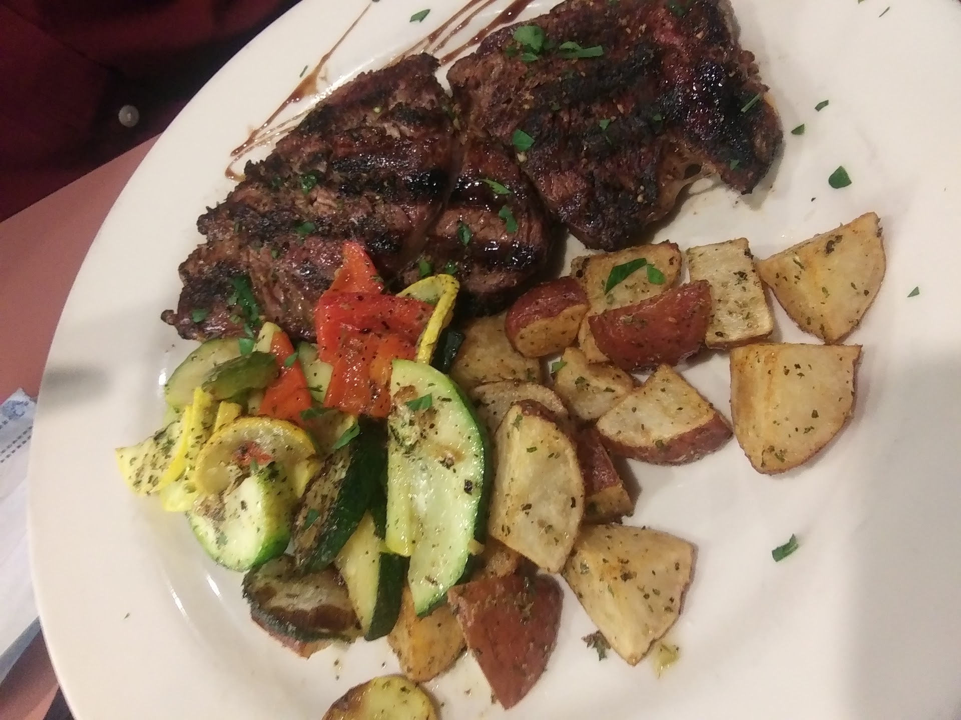 Read moreThis was the third time my husband and I have dined here. They say the third time is the charm...well it wasn't. My husband's food came out wrong, even though the server knew it was wrong she said nothing. Had to have it sent back. He also ordered a Long Island Iced Tea which was fine. Later in the evening he ordered another one, and the "fresh new" drink came out in the same glass. We know this because his old crushed up lemon was still in the bottom of the glass. Why couldn't they take two seconds to use new glass like any other bar/restaurant would? Oh that's right, they don't actually have a real bartender. They have a full bar but no one to properly tend to it. The manager/owner has to make the drinks or whoever else might know how. I myself ordered a second Jack&Coke and waited about 10 minutes for it to come out (place was not busy). When our server brought it to me she actually said to me "Let me know if it tastes right....". It was clearly watered down and tasted nasty from sitting there for so long. They made me another one and later gave me a free cheesecake which was nice. Problem was the cheesecake I received was FROZEN. Why would I want a frozen desert? We had a Groupon which was supposed to take $20 off of our total bill. The server brought us out our check and told us that she would make sure that she ran our card for $20 less then the total because of the Groupon. When she came back she actually ran our card for the total amount and then had to void it out. Thanks a lot. Being sweet and apologizing over and over through the whole meal doesn't make your mistakes acceptable. Food may taste good, but we will not be returning. I can get good tasting Italian elsewhere and not have to deal with this. Oh and they'll...