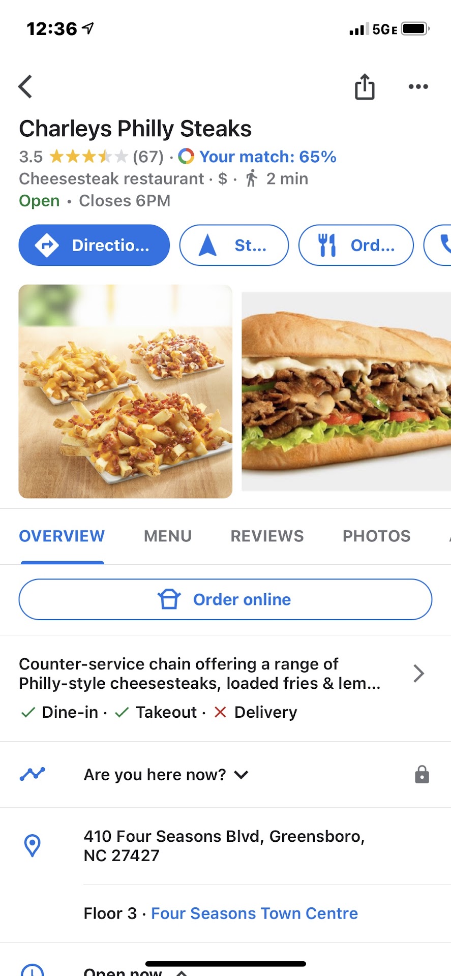 Read moreVery disappointed in the experience my mother & myself had yesterday with our visit. I always enjoy going to Greensboro just so I can eat here but I may just go 20-30 miles n the opposite direction next time. Our orders were rung up wrong we wanted large meals but instead we charged for medium. When we both realized we let the guy who was on the grill now and he insisted we get back in line. We are in a huge mall we’re thousands of people shop daily we had already waited 15-20 min to order so why she we have to get back in line. When we had words and I asked for the manager he stated he was the manager so I asked to get in contact with his supervisor and he smartly said he would get the number. We did finally get it straightened out but this could have all been avoided to begin with. Even when I did finally get my food I don’t feel as if it were as good as previous...