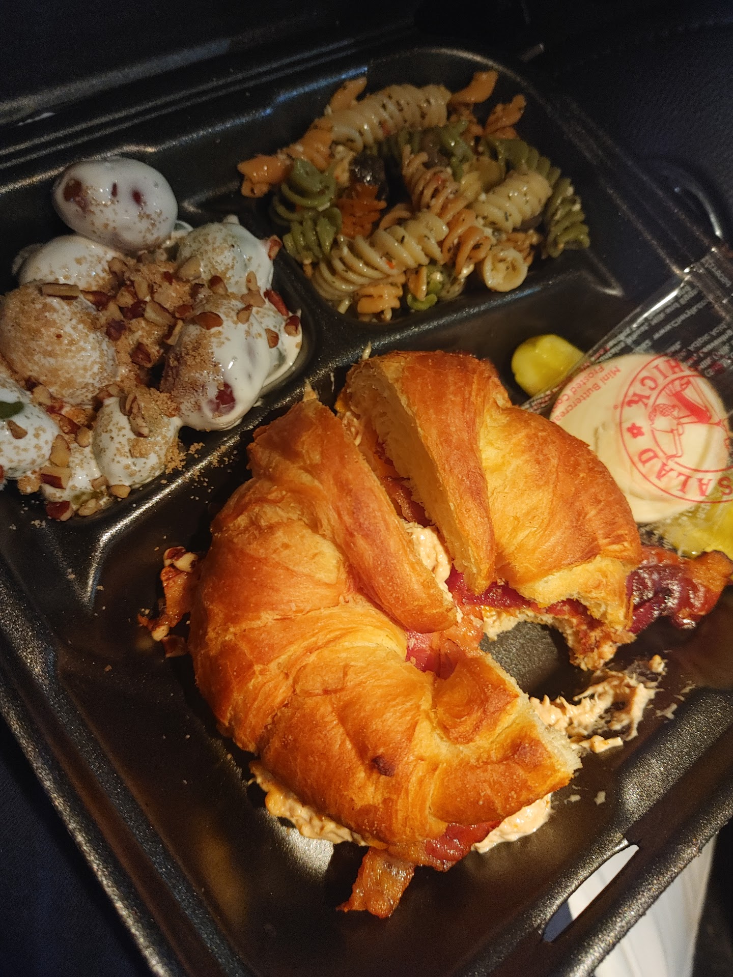 The chicken salad was light, not heavy in mayo or Dill. Not enough cucumber bits. Then again, I am a cucumber lover, so I could always use more. It's just a personal preference.