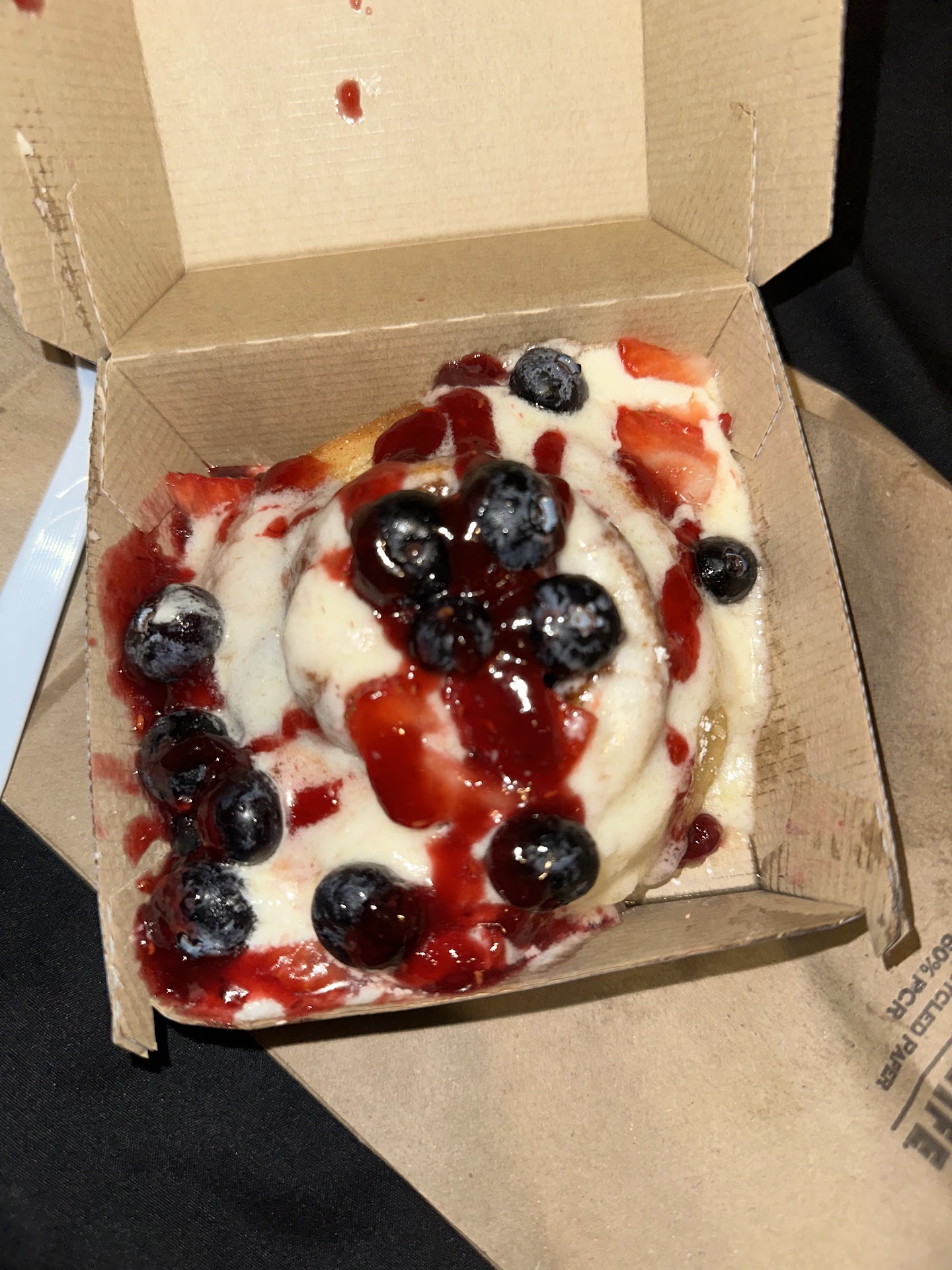 If you're ordering a cinnamon roll to go, be sure to let the staff know so they can pack it properly.