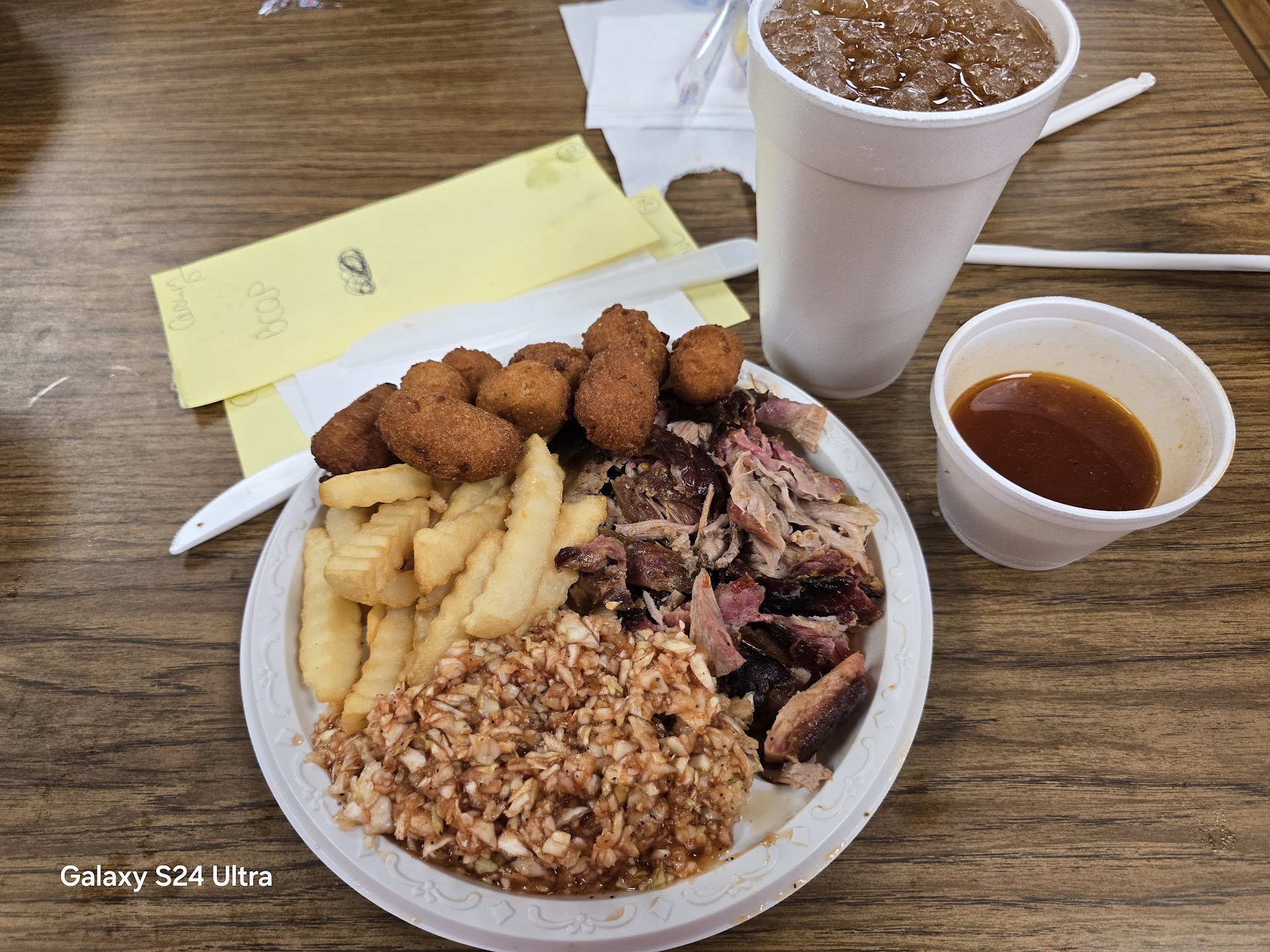 Read moreI don't like leaving bad reviews at all. But this was the worst bbq me and my daughter and grandson has ever had in my whole entire life. The ribs were hard as a rock and dry as dust. The BBQ chicken was dry. The baked beans were tasteless. The Cole slaw was tasteless. The French fries were old and hard. The hushpuppies were old and burnt. I couldn't eat it. It ended up in the trash. I don't understand how anyone can really mess up a whole meal like this. I love BBQ and all the fixings it came with. But this place needs a new cook for sure. After spending over $70. I was so desterbed that this place had such great reviews. I would never recommend this place to anyone. When I picked up my food. I was greeted nicely. But the place needs more considerate people and definately a cook who knows how to make good BBQ and all the sides. I'm not a wasteful person. But I couldn't eat or enjoy this meal at all. I did try. But I was so appalled at the meal really being disappointing in every way. I hope they find a cook that knows what they're doing. Bc the meals me and my daughter and grandson recieved tasted like it had been sitting for several days. And was not good at all. STAY AWAY FROM THIS BBQ PLACE UNTIL THEY FIGURE OUT WHATS WRONG WITH THE OUT COME...