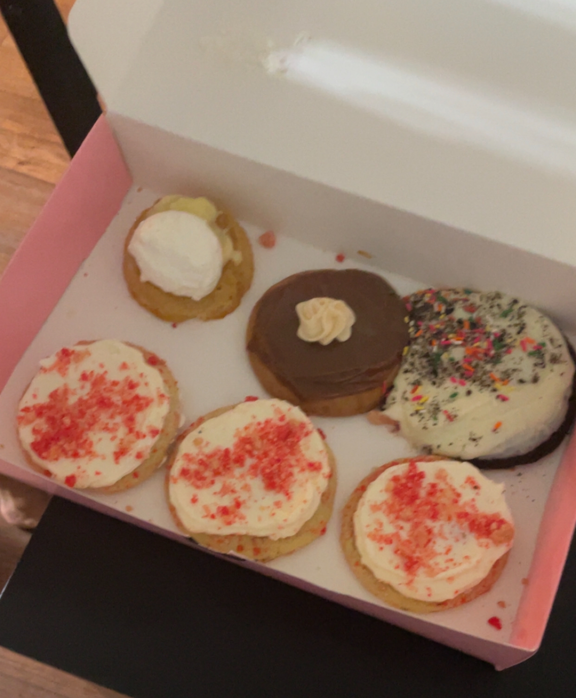 i got the fruity pebbles cookie, and man that first bite took me straight back to my childhood. the cookie was soft and buttery with that perfect chew and the frosting on top was thick and sweet, just like the milk at the bottom of a cereal bowl. but the best part? the fruity pebbles sprinkled all over it, giving it that crunch and that classic, sugary flavor i used to love as a kid...