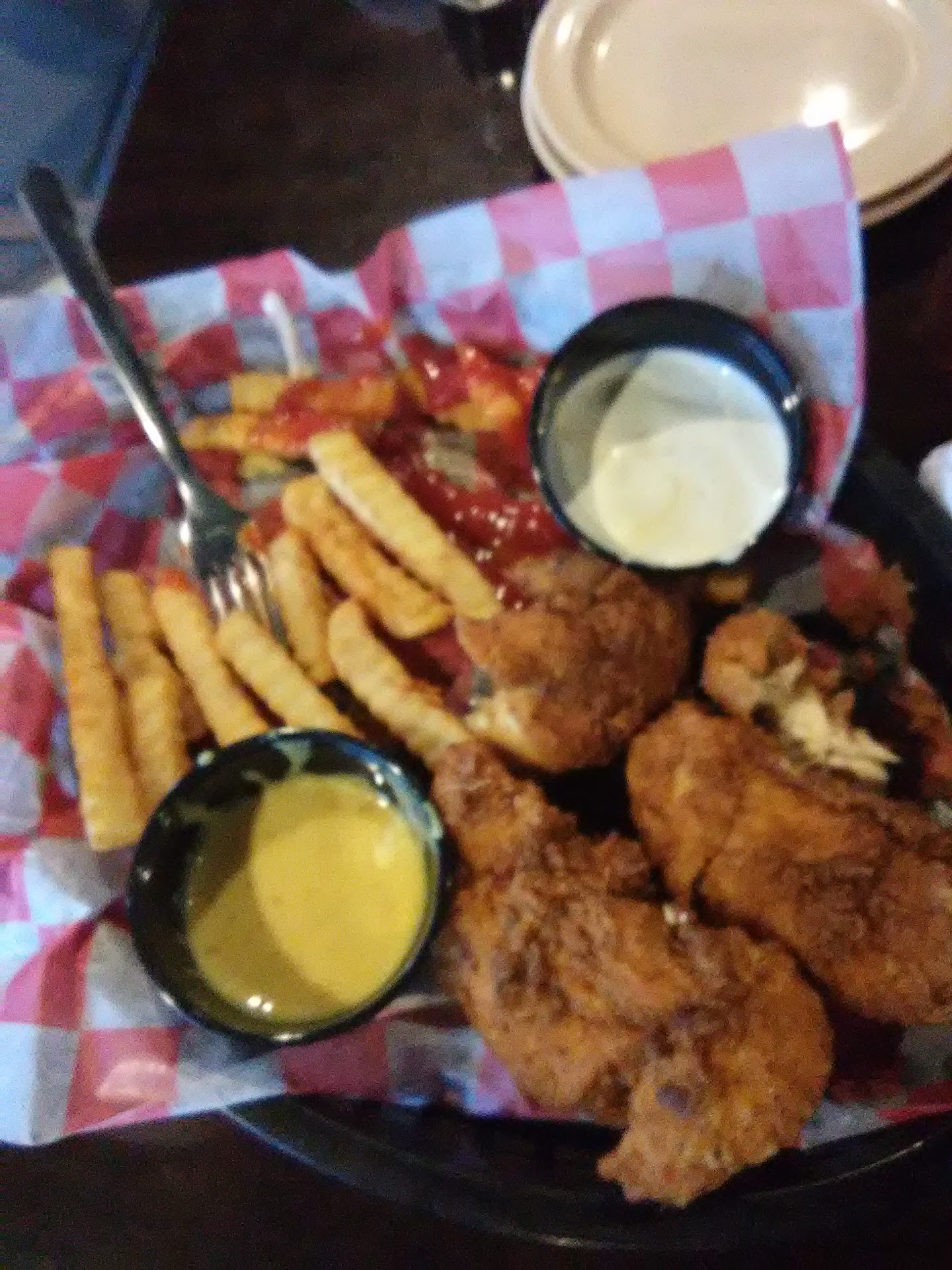 Read moreMy youngest daughter and I came here just from looking up places with chicken tenders. When we walked in I noticed it was more like a bar so since it was my first time I wasnt sure if kids could eat there too until I noticed other kids. When we sat down a lady came over and took our drink order and then came back to take my food order since I didnt know what I wanted at first. I went on and ordered my daughter's food since I knew what she wanted but I ordered the patty melt w/ extra crispy fries and the peper jack cheese pretzel bites. I know I dont have a picture of them but that is because they never came. I waited until I got the receipt and she didnt add them to my order. I didnt say anything because maybe I didnt really need them at the time because I was being a little greedy and I was hungry lol. That is one reason why its 3 stars instead of 5. The second reason is because after we got our food the lady that took our order and brought us our drinks never came back to the table. After about 30 min I received a refill of my drink from a different girl. I dont know who my initial waitress was supposed to be but since the food was good we will go back and try more food including the...