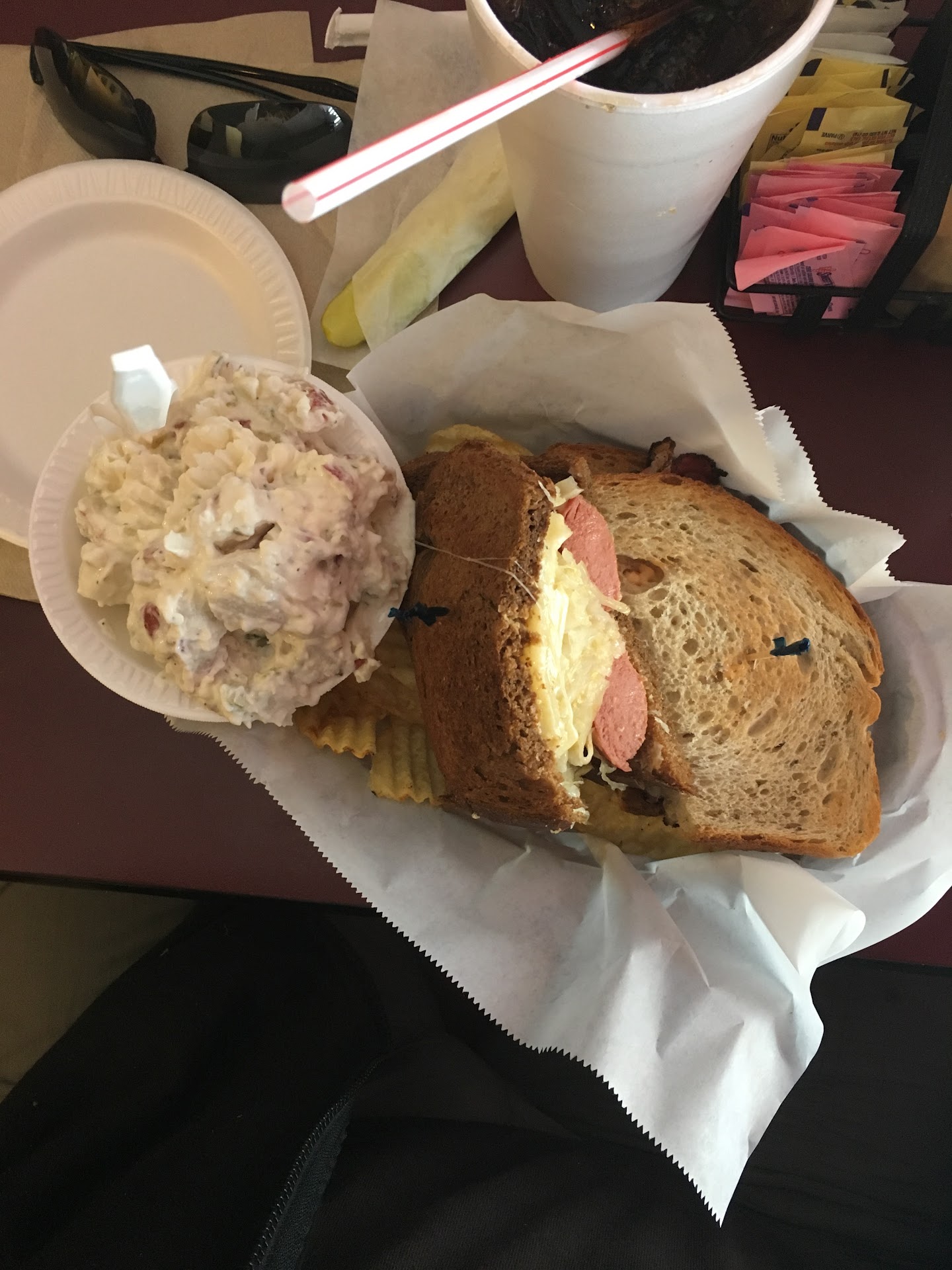 Redskin potato salad: truly delicious, one of the best versions I’ve ever had. Perfect consistency, texture, and seasonings.