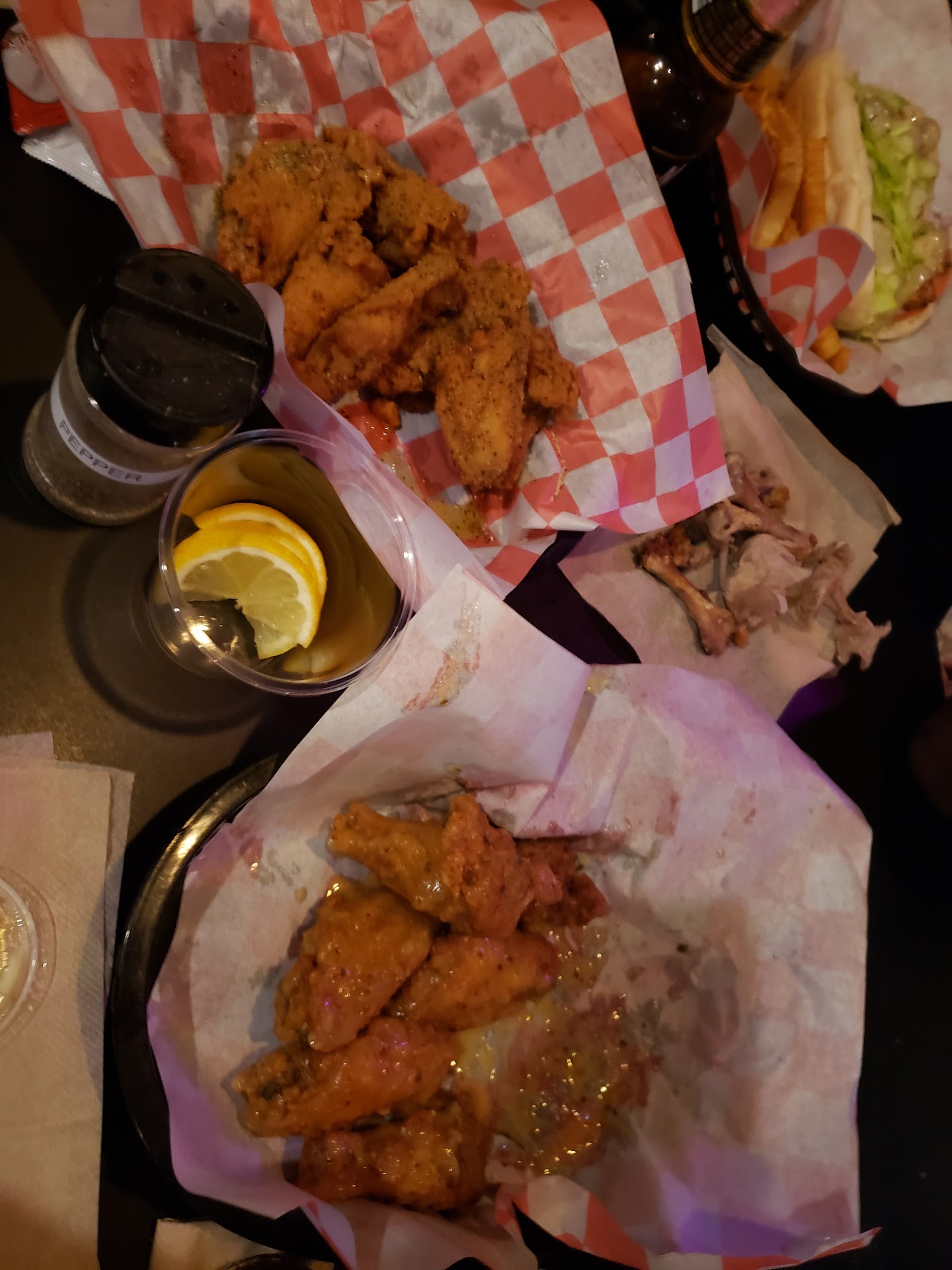 New to NC so we happened to come across the promoting of "Reggae night" about 2wks ago. Location outlook on the outside not so appealing, parking lot feels almost like a little dealership. They have a back deck lounge area where you can listen to music, didnt check that area as we wanted to see what the inside and Dj was like. Somewhat calm mature crowd until it got busier later, dance floor then got busy. "Reggae" selection was not so reggae or great, but there were some good hits to get the crowd going. Krystal( -yes with a K!) was our Awesome Server attentive and on point, shared details of special theme nights and even when she had to help at the bar and a teammate handled the flr, she still made sure to tend to us her orig table. Now the BEST-esT part!! Lol..THE WINGS!!!! I ordered naked flavored 2 ways and my group ordered the breaded, a philly chicken that apparently is only avail during a window, but the kitchen was willing to mk. That was kind of them. We ordered tenders as well & fries. The tenders were a bit too overcooked as you could tell in batter color but the Wings!! For it being breaded were PERFECT! Lightly battered and fried perfectly and seasoned! However our fries came late and were re-portioned at the window I saw to create the side and lg..to me now neither were too filling..overall..I would still go back for sure for the wings whether take out or if Krystal is in ..then eat in house. Drink cocktails however, werent as on point I was told and music mix until there is a dj could def use a little improvement, but either way still worth checking out..def...