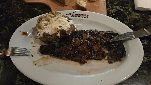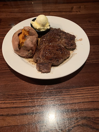 My wife enjoyed her salmon and baked potato. I started on my loaded sweet potato which was awesome. The waitress did a very early check and everything was fine. However my Outlaw steak cooked medium was rare. It also was very fatty.