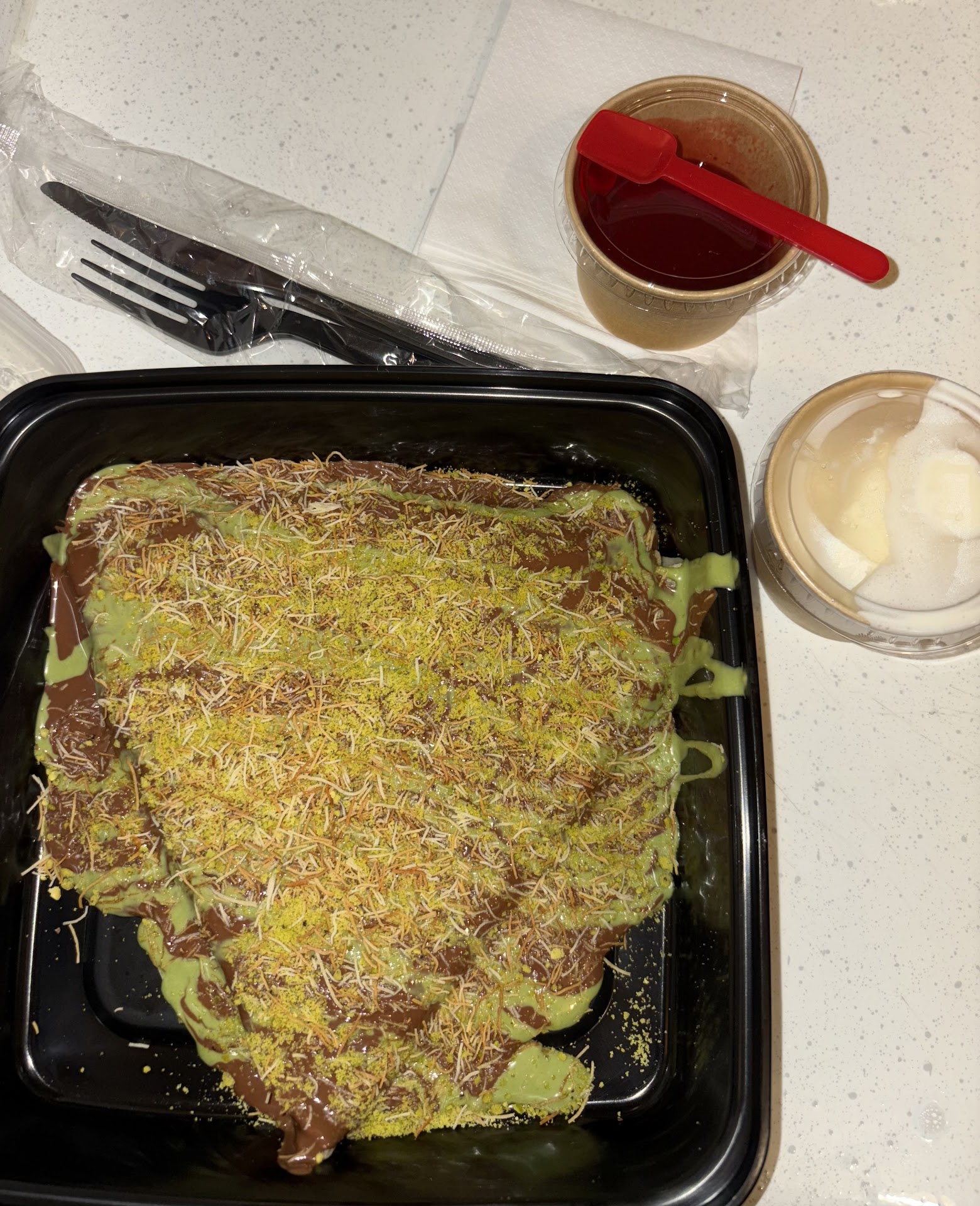 Iâm absolutely addicted to the Dubai chocolate cup from another business, but unfortunately, they only offer it on weekends. One day, I was telling my coworker how badly I was craving it, and she recommended this spot, saying they have Dubai chocolate bars.