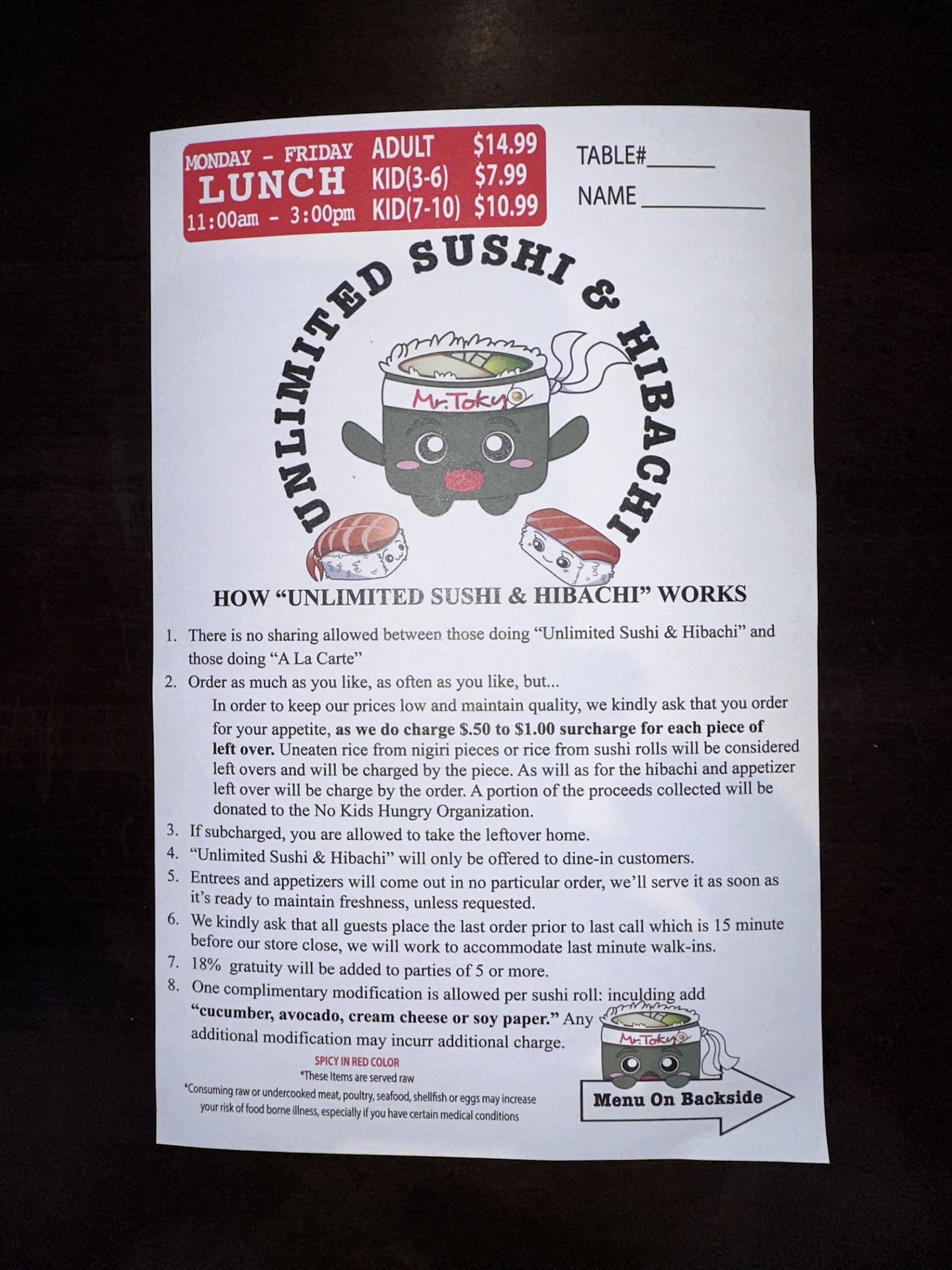 I recently visited Mr. Tokyo, and while the food had some redeeming qualities, the overall experience was underwhelming.