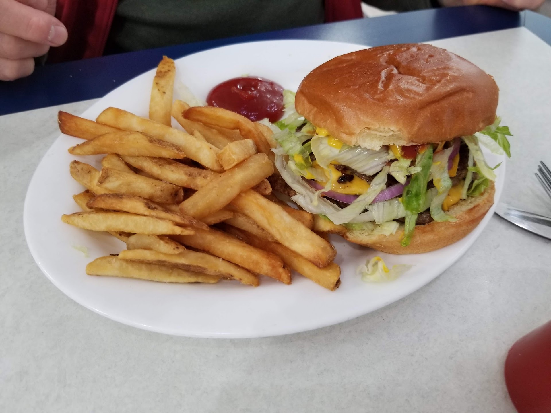 I overheard the young woman near the kitchen window tell staff to just “take the onions off” and send the sandwich back out. Not remake it. Not replace the bun or tomato. Just… remove the onion and pretend it never happened. That alone would’ve been enough to make me rethink coming back. The health department would not be okay with that, and neither are those of us with sensory sensitivities or allergies. The flavor would’ve still been ruined.