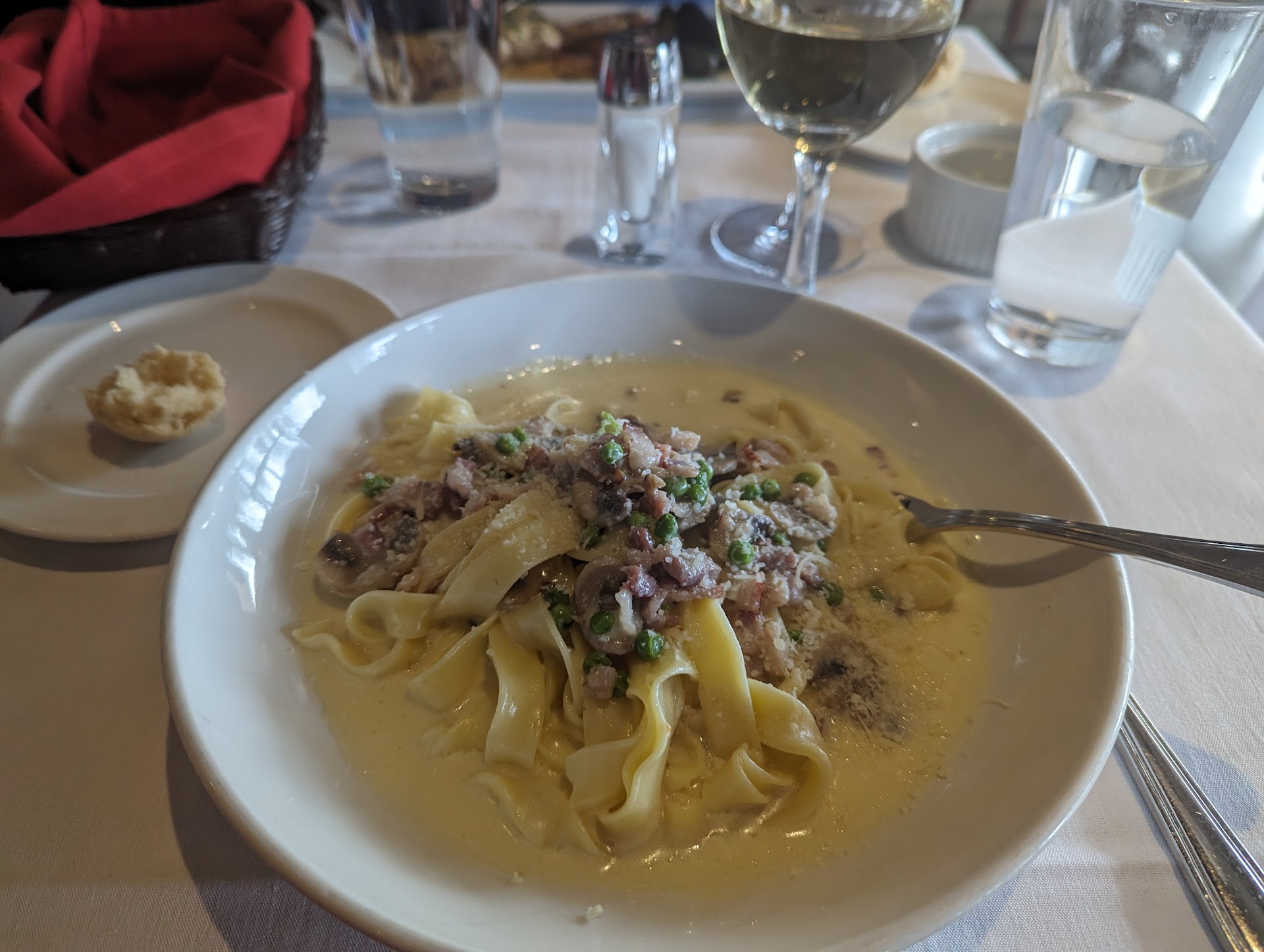 ...which is why before I tell you about the most awkward dinner of my life, I’ll tell you that the pasta was excellent. I had strozzapreti in meat sauce. It was perfectly cooked, hot, and tasty. My wife had seafood ravioli, and she wouldn't even try my pasta because she wanted to preserve the taste. The pasta really is fantastic.