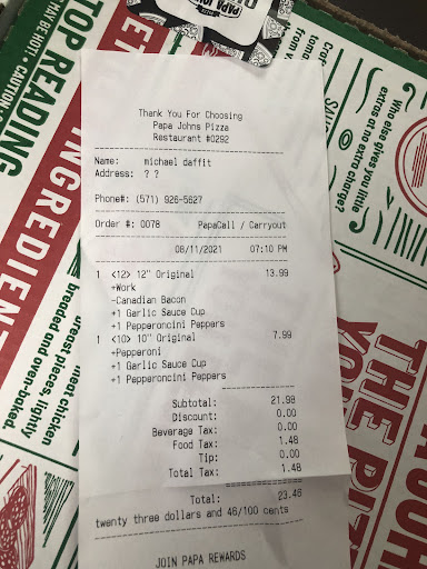 Read moreI cannot believe I'm even having to write this review. I despise writing reviews, but at this situation, I'm floored. Smh. I ordered a pizza and cheese sticks at 8:38 pm, apparently through Papa John's call center that I was routed to after calling the battleground location phone number, and 2 hours later No pizza. I called the same exact number, got Skylar at the battleground location this time and he says they have no record of my order. Then puts me on hold to check with manager about what to do, gets back on the phone to say they have no record of my order and nothing can be done at this point. I asked to speak to the manager, and low and behold, now there is no manager on duty. I would have to call back at 10 am. 😒 Ordering Marcos from now on. This...