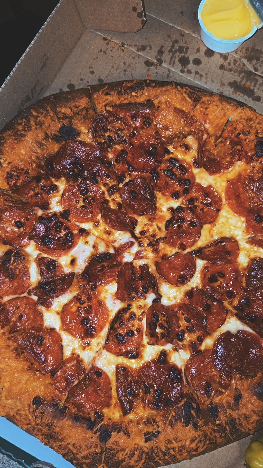 I wish I had taken a photo because the pizza was far from fluffy. My original pizza almost appeared to be a thin crust so I decided to order one to avoid the same issues.