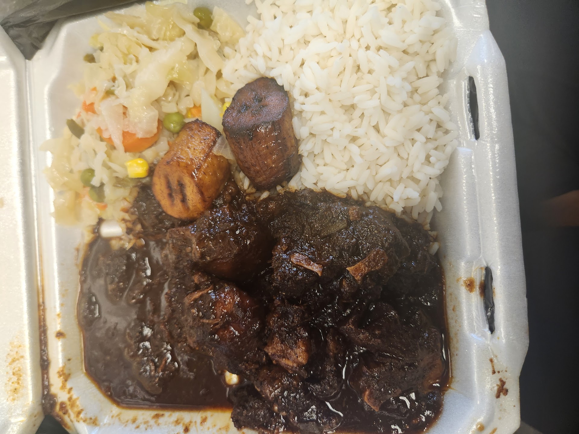 Read moreMaybe it's just how I'm just striking out when I go here. I gave a pass on the stew chicken cause maybe it got overcooked and had some hardened pieces cause it was 6pm, or was the end of the batch? It was proper dinner time...sooo idk what happened there? The cabbage so flavoless and bland. Well I always try a place twice cause could be an off day. I went back again try the oxtail, this time it's about 5pm. They just weren't enjoyable. I mean I had a tray of sauce where I should have had more oxtail and this did not taste like oxtail recipe at all. It actually tasted more like brown stew chicken recipe. It tasted ketchupy. Yes im saying ketchupy as a real word and it too sweet like cake. Cooked very tender though. If you don't know the difference it maybe ok for you. I grew up eating this dish for decades from Miami to NY and from my home, family and freinds homes. Uh That ain't it. This is not an authentic recipe. These folk know that It weren't it too. I was turned off by this weird recipe couldn't finish it. I have a feeling you all know how to do this right. Just...