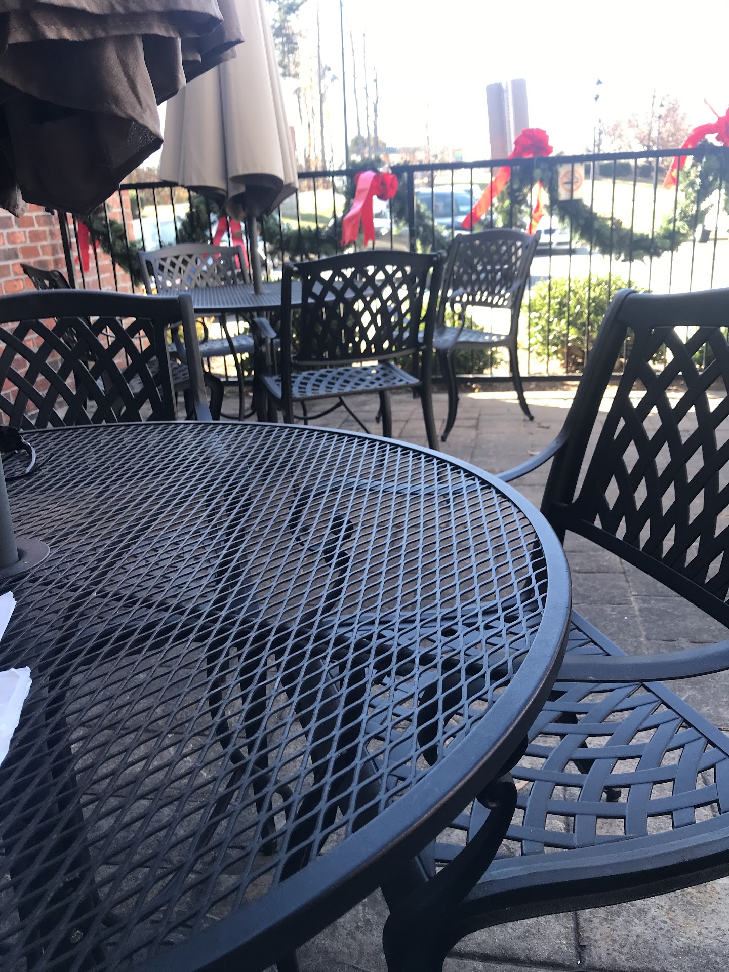 UPDATE 12/3/21. What a gorgeous day to sit outside! We chose the outside patio with umbrellas. Kennedy timed everything perfectly, remembered the extra ranch, kept our drinks full and was very accommodating. I asked if I could have the Red Goat Chicken (red pepper jelly, goat cheese and bacon) sandwich but with a burger in lieu of chicken. She said no problem without batting an eye. It was delicious! We started with the Hot Buffalo Shrimp app and it was phenomenal ! The shrimp were huge, crispy and tender. I wish the tails had been removed. Hubs got the Bacon Cheeseburger and really enjoyed it. We both had the burgers cooked medium and they were spot on. The fries were a little dark for my preference and they weren’t crispy. I’d get a different side next time. Still love this place!!