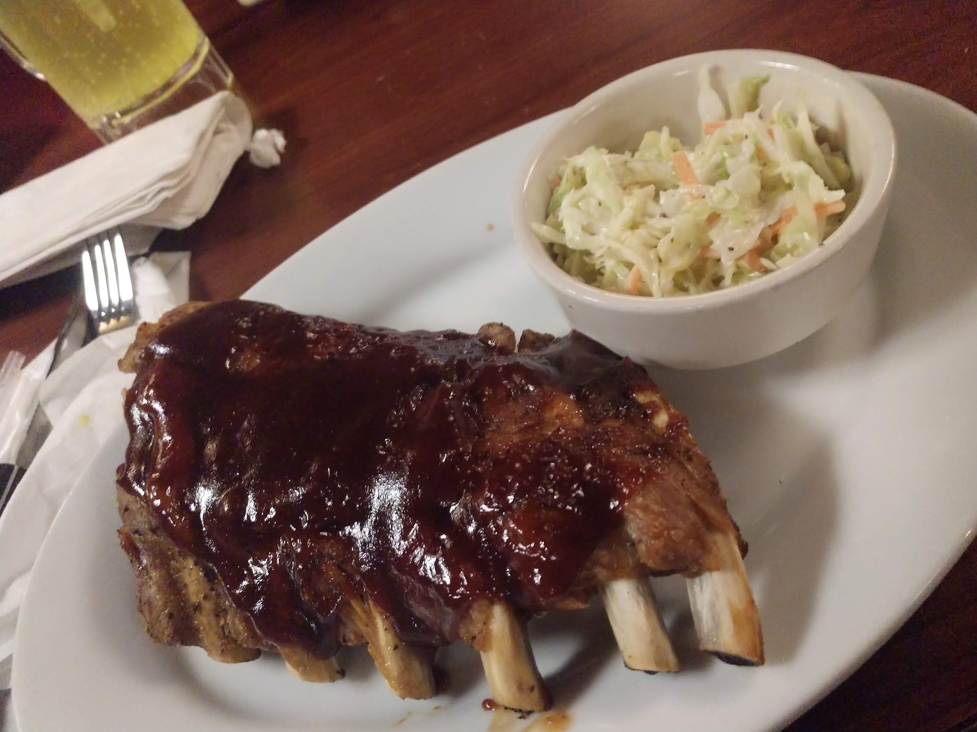 Read moreThe service was good. Cheven was busy with a large group beside us but managed to take very good care of us. Saying that, pretty upset with the bill. We asked for a high ball which from what we understood was $4. Instead of the short glass we simply asked for a tall glass which gave us more Mello Yellow. The bill says whsky/brbn mixr $4 then says Canadian Club $2. We did not ask for a double, simply a taller glass with more soda. I'm assuming because our server didn't understand what we wanted but I will again say she was a good server. Also, in our group was myself, my husband and our daughter. My daughter and I chose the 2 for $24.99. My husband chose the salmon dish. When it came to dessert that came with my daughter and my meal my husband helped me chose mine and said lime cake and my daughter got the Oreo cake. When we got home I realized the server thought my husband and I both wanted the lime cake so we were charged $6.49 for an extra cake that we didn't even want or ask for. So, we were charged $24.99 for mine and my daughter's meal, $17.99 for my husband's meal, $4.00 plus $2.00 for each drink in which we both had two, so that's $24.00 for drinks, which we thought would be $16.00 for 4 high balls, $6.49 for the extra cake which equals $81.41. So we were charged $14.49 more than what we thought it would be. An additional reminder to anyone that orders the ribs with cole slaw and has left overs, ask for a to go box for the Cole Slaw to go in the to go plate or your left over ribs will smell and taste like cabbage the next day. I did leave a very generous tip because I knew the server was busy and she did very good job...