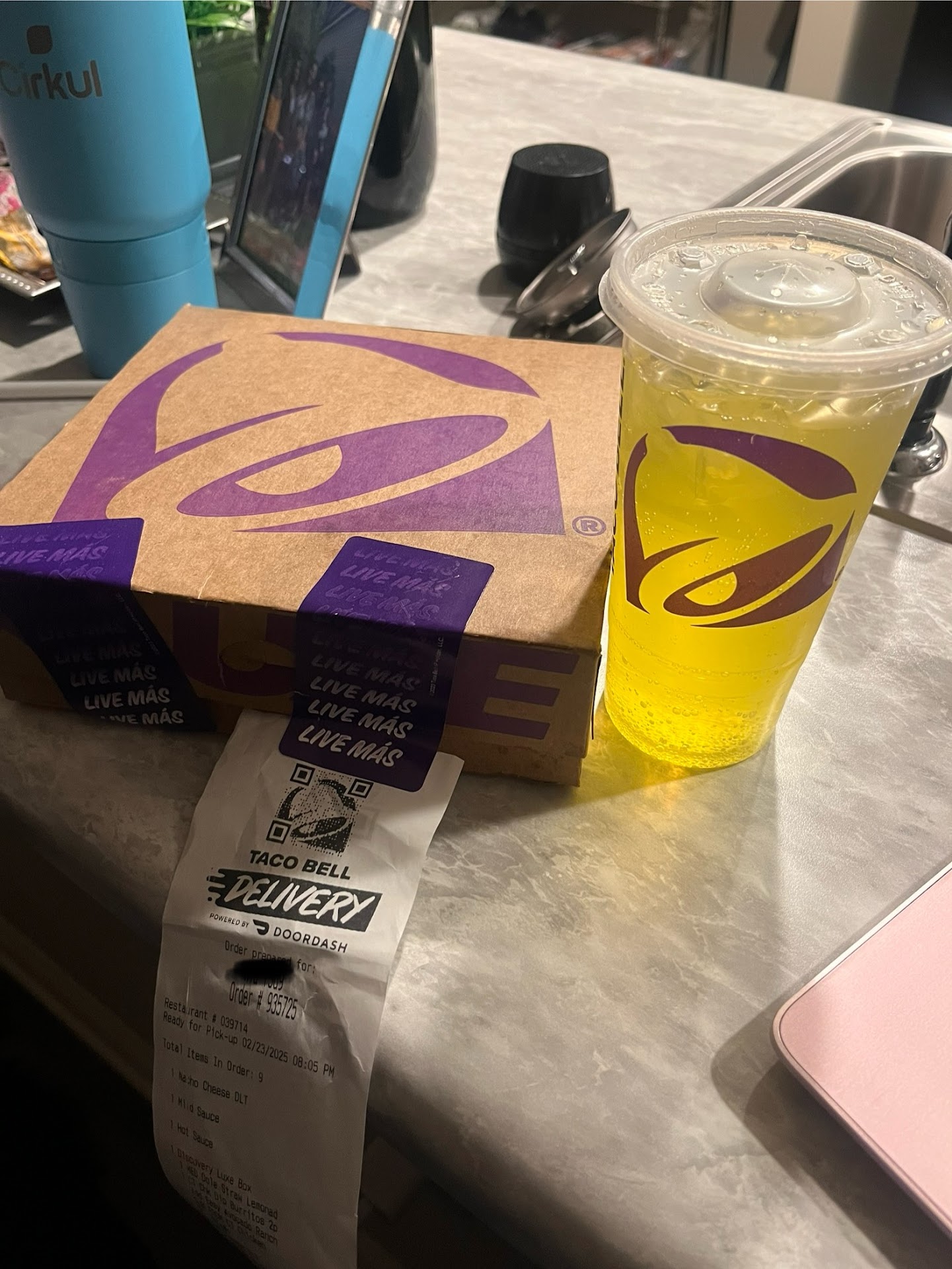 Read moreI wish I could leave zero stars, the service here has drastically declined for the past year. My boyfriend went to pick up an order late last night that he placed through the mobile app. He went through the drive through, in a long line of backed up cars, come to find out because there was literally only ONE person working. He didn’t have an issue with this, though that’s ridiculous to put a single person through, and proceeded to wait over half an hour before getting to the window. The woman that was working treated him poorly, and started handing him a ton of food (which she had complained was a $40 order she had to make by herself) that was NOT his. He tried to explain to her that he had told her his name, and this order was not his (we order often enough to know that they are supposed to confirm the order on the screen before making it, something we really appreciate as vegetarians). Instead of being apologetic, she got ANGRY with him and told him she didn’t have his order. He ended up driving away, after waiting over 45 minutes in the drive through, without his food, despite before very patient and planning to tip her. He had just come off of a 13 hour shift, he also works in the restaurant industry, and was sympathetic towards her working by herself... until she was incredibly rude to him!! This is not the first time we’ve had complications there recently. I’ve been with him when we’ve gotten yelled at by employees when we returned food for having meat on it, being accused of incorrectly swapping the ingredient for beans on the app. This is also not the first time we’ve run into issues when we go through the drive through late at night (around 11pm) and there’s only one person working. We love Taco Bell, they make it very easy for us to eat there, and it’s food we can depend on after he’s worked a closing shift. This Taco Bell, however, is a complete disaster. It’s a nightmare every time we go there, even giving them chances after going months without going to...