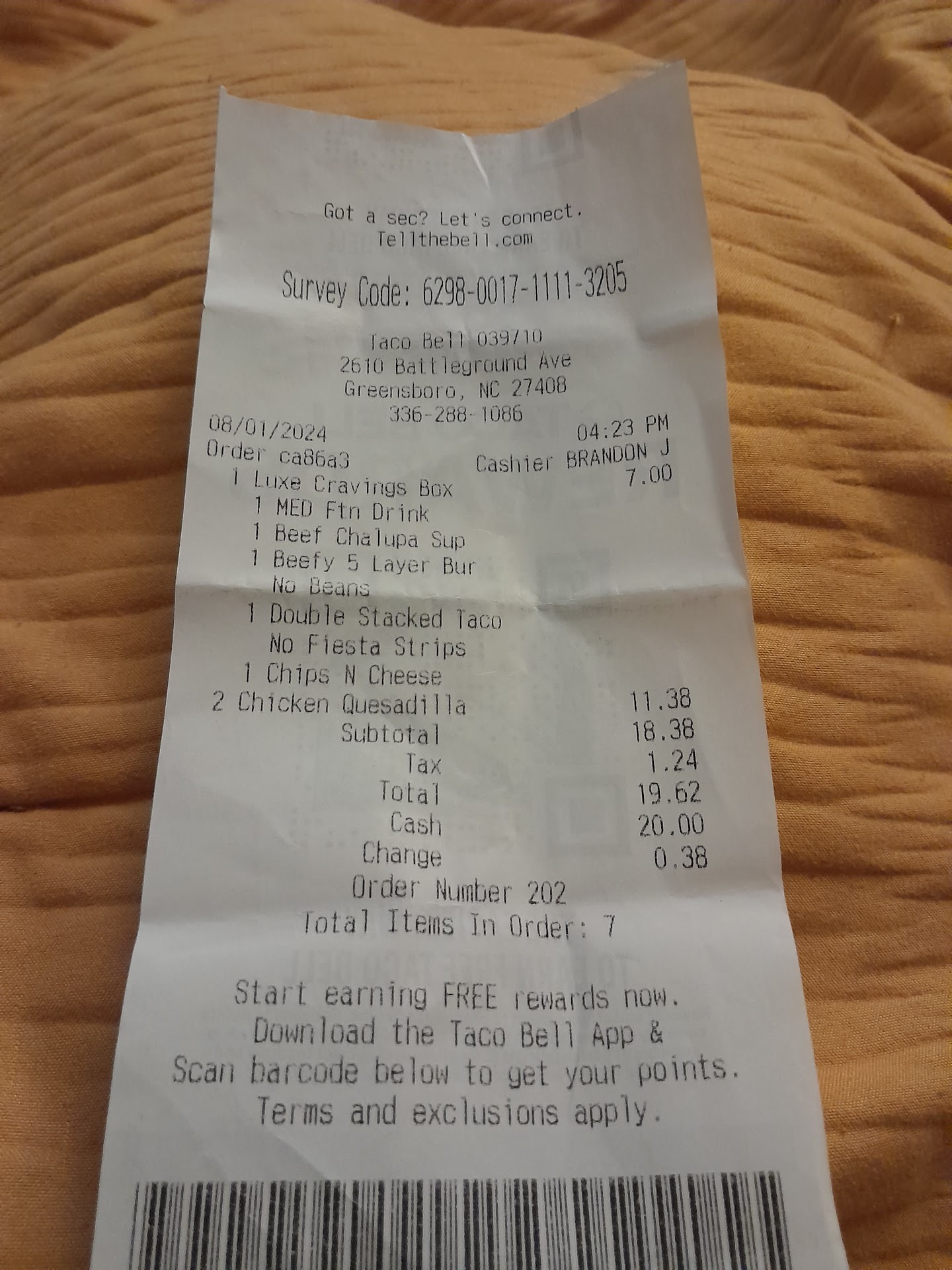 I have generally liked this Taco Bell location for a long time; however, a recent visit has brought to my attention that something has gone wrong. I have taken a night to deliberate and be certain I do not levy undue blame at innocent individuals. I do not believe the employees are to blame. However, there are several systemic and unacceptable issues which require redress at this location. I walked in to a counter tended by no one. There are no signs or directions indicating where customers are supposed to order. They are simply expected to find the ordering screens which are located opposite the counter, facing the completely opposite direction in which customers instinctively look to place orders (namely, at the counter.) And here is where my main issues begin. I have three major problems: (1) The ordering screens are entirely counter-intuitive. The sections are not organized to keep items from the same course together, the categories themselves are vague, and you are presented with a confusing number of options every time you select an item for purchase. (2) Almost ⅓ of Taco Bell's menu is absent from the ordering screens. And it's not just that it's not offered at this location (a point I'll touch on later). But hybrid items like quesaritos, any normal sized quesadillas, and classics like the beefy five layer burrito are absent from the menu. And (3) all of the employees are stationed in a way that is conducive to customers being ignored. I tend to be a very polite person. I do not like imposing, I do not like asking for that which is not forthcoming, and I don't like asking for special treatment. My brother, however, (another individual of calm temperament) did decide to get an employees attention so he could order what he actually wanted. It was several full minutes before anyone even noticed he was trying to get their attention, and it was at least another minute before someone came to take the order. Now, as I said, I don't blame the employees. The work stations are set up so that everyone is either at the drive-thru or cooking stations, and no one can pay attention to customers needing assistance. The woman who came to take his order was very courteous and apologetic for not only the wait, but the lack of items on the menu. And then was able to place his order on the cash register. And that's my biggest problem with this location: they are aware of the problems, yet they persist. I said before that I like this location, and I will check in from time to time to see if anything has changed. But until something does change, I will exclusively purchase food from the other location on Battleground Avenue next to the Walmart. I am extremely disappointed and dissatisfied with this Taco Bell location.