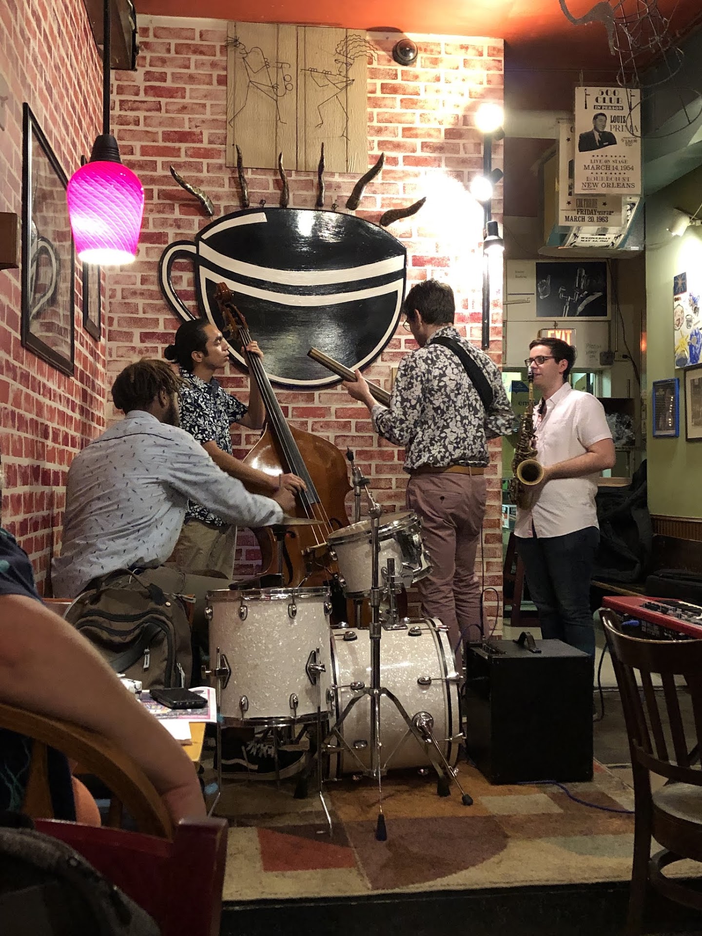 Read moreI recently moved to the area and had the chance to visit this amazing place yesterday. I ordered a decaf coffee because it was late and it was good. I was hungry so I asked the Barista what she would recommend. Both baristas were helpful, friendly and nice. The coffee shop aside from a big variety of coffee, it offer pastries, sandwiches, frozen lemonades, and wine. While I was there, the wifi was not working well. However, a jazz band starter playing and the place was packed within minutes. I saw a women painting, two guys plating chess, two men reading their books, people on their computers and all were enjoying this surprisingly big place. It is right beside UNCH, which was very convenient for me. I highly recommend this place. If you want to enjoy a glass of wine with a jazz band playing in the background, if you want to work on your homework, or if you want to share a cup of coffee with your friends… this is definitely the...