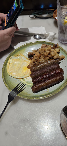 Food ⭐ The potatoes (home fries) came off sweet?? Guessing honestly the type of tater they used. ⭐ The pancakes 🥞 3 medium sized pancakes are great, tho could do without a side of butter on the plate maybe in a side cup. The ham is great not to salty not over cooked, just dang good. ⭐ The bacon 🥓 2 slices, was good not dripping grease, not too crispy, honestly just right. The sausage 2 links with the options of patties, was good, small spice nothing major. ⭐ The eggs 🍳🥚, were great, cooked to order, and they were spot on perfect.