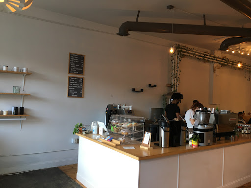 Nice coffee shop that makes a delicious oat milk latte! The shop has a nice minimal, light-filled interior, friendly staff, cozy couch, large and small tables for laptop working.